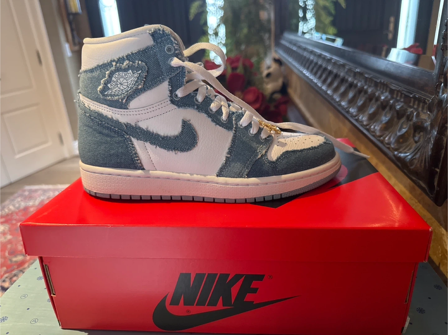 Selling a pair of Nike Air Jordan 1 Retro High OG Denim (Women's). These shoes are in great condition and come with the original box. A stylish addition to any sneaker collection!