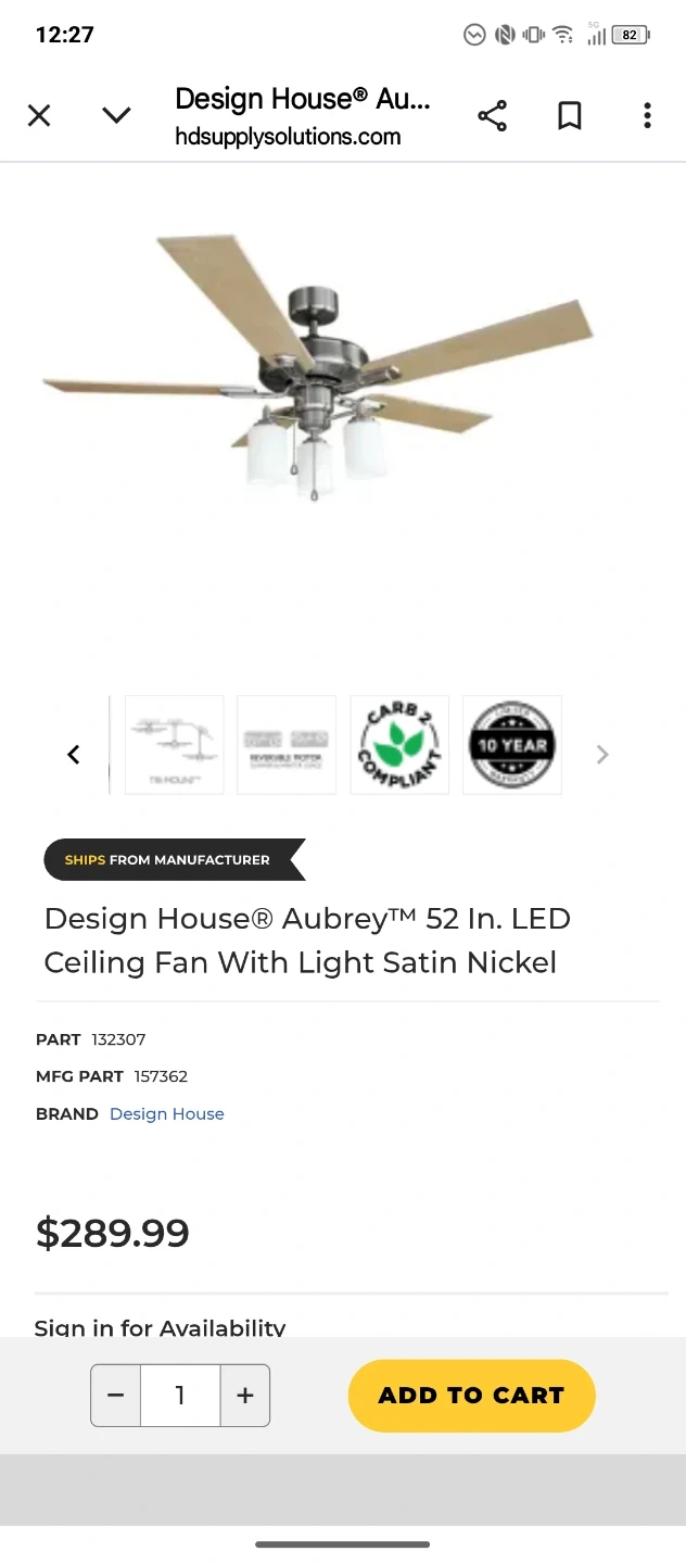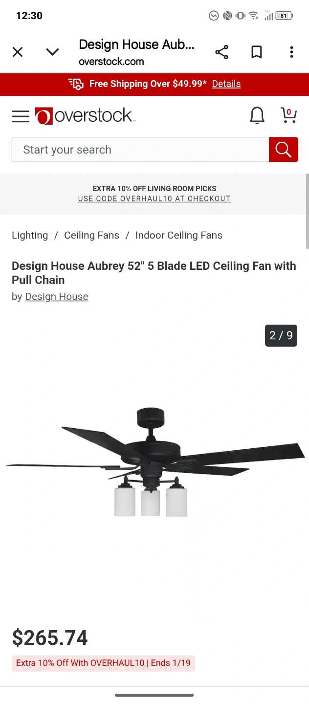 Design House Aubrey 52" 5 Blade LED Ceiling Fan