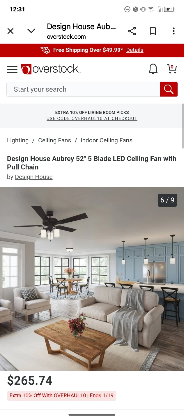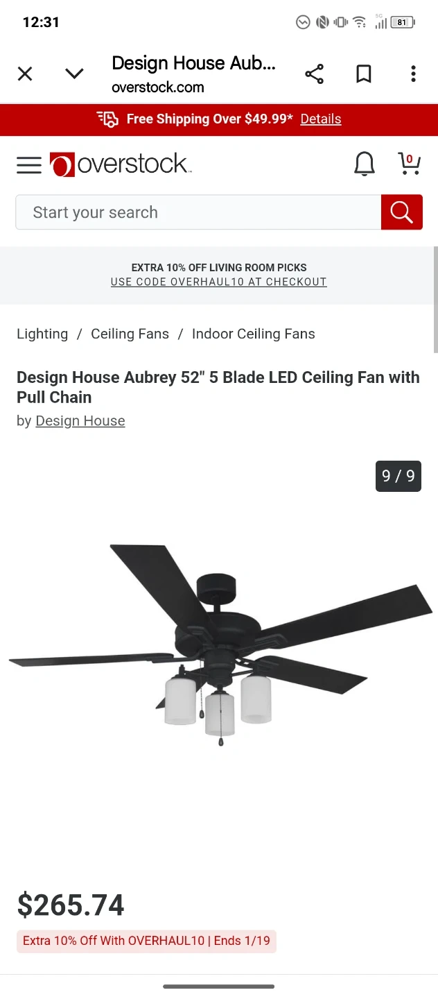 Design House Aubrey 52" 5 Blade LED Ceiling Fan