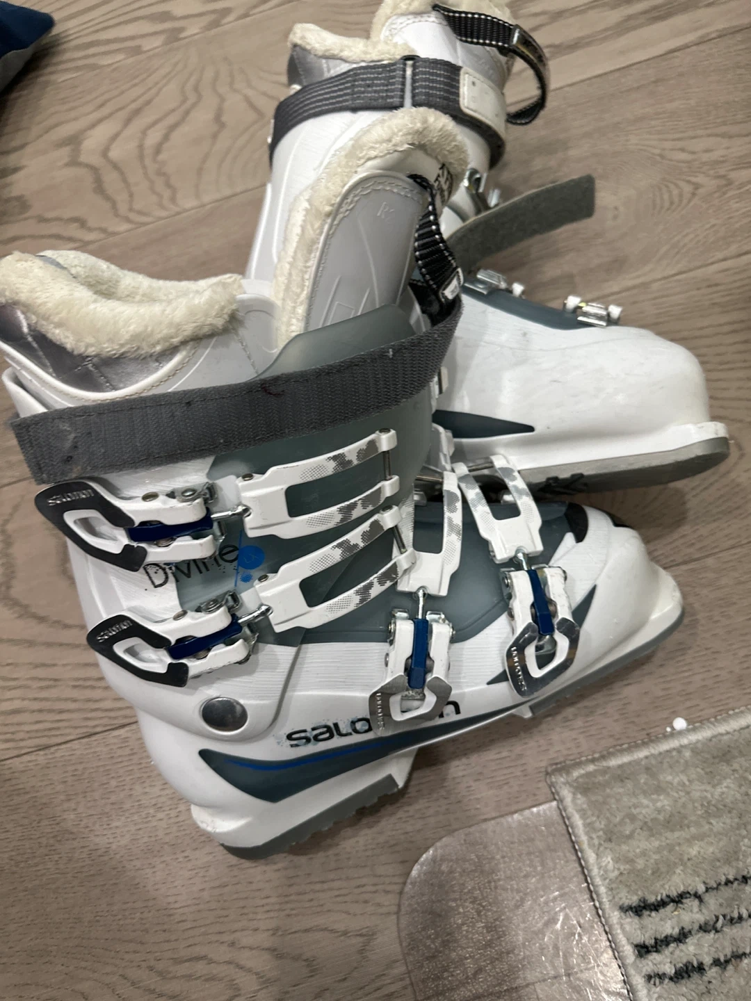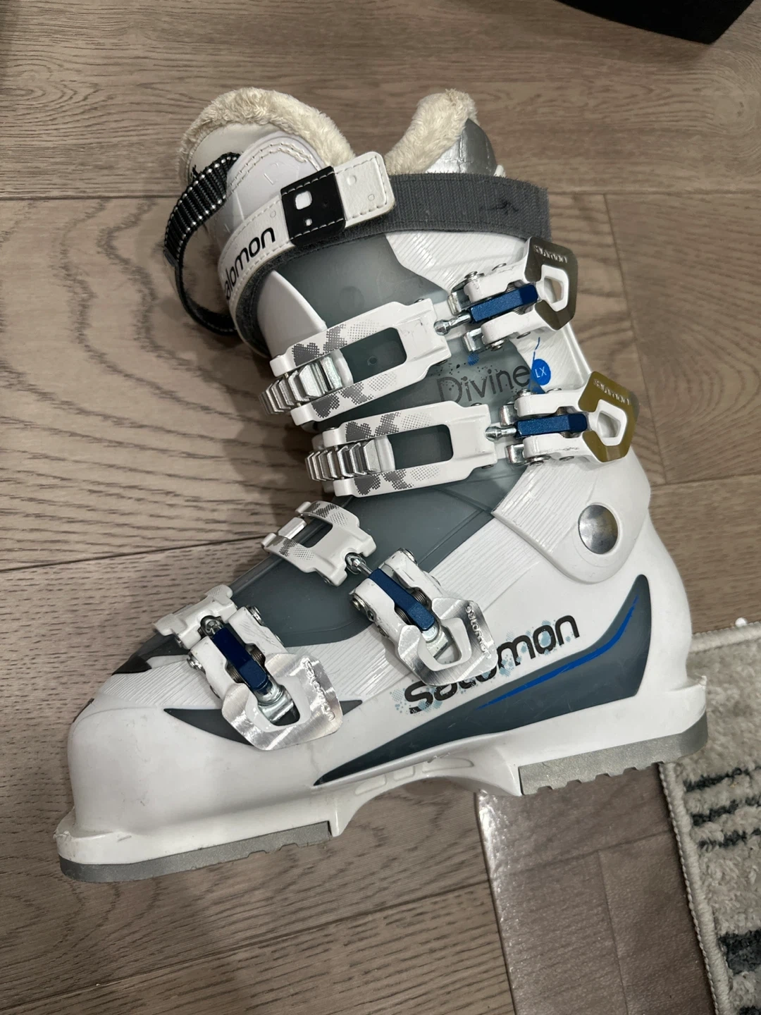Women's Salomon Divine LX ski boots in white and grey. Size 24/24.5 (288mm).