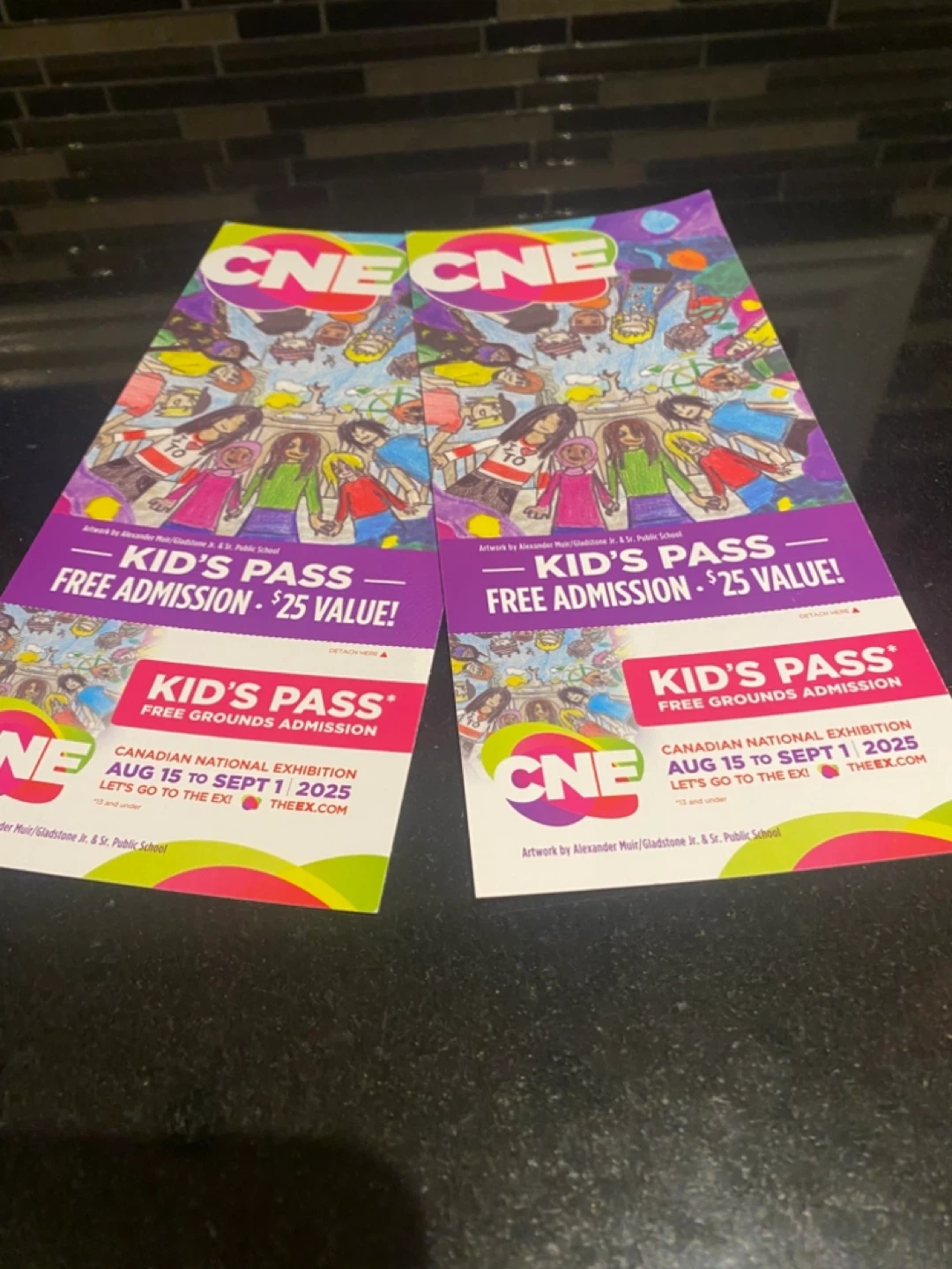 Free, two CNE Kid's Pass for free admission, valued at $25! This pass is for the Canadian National Exhibition, valid from August 15 to September 1, 2025. Let's go to the Ex!