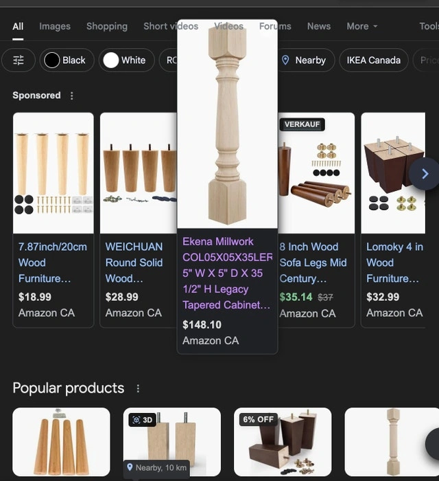 This raw natural wood cabinet leg post measures 5" W x 5" D x 35 1/2" H, perfect for adding a touch of elegance to your custom projects. This leg is made of rubberwood, which provides a sturdy and beautiful design element. This item is in used condition. Brand: Ekena Millwork. Colour: Rubberwood. Material: Rubberwood. Size: 5" W x 5" D x 35 1/2" H. If you're reading this, it's still available! Asking $40. Pick-up is Keele & Beechborough. CASH ONLY.