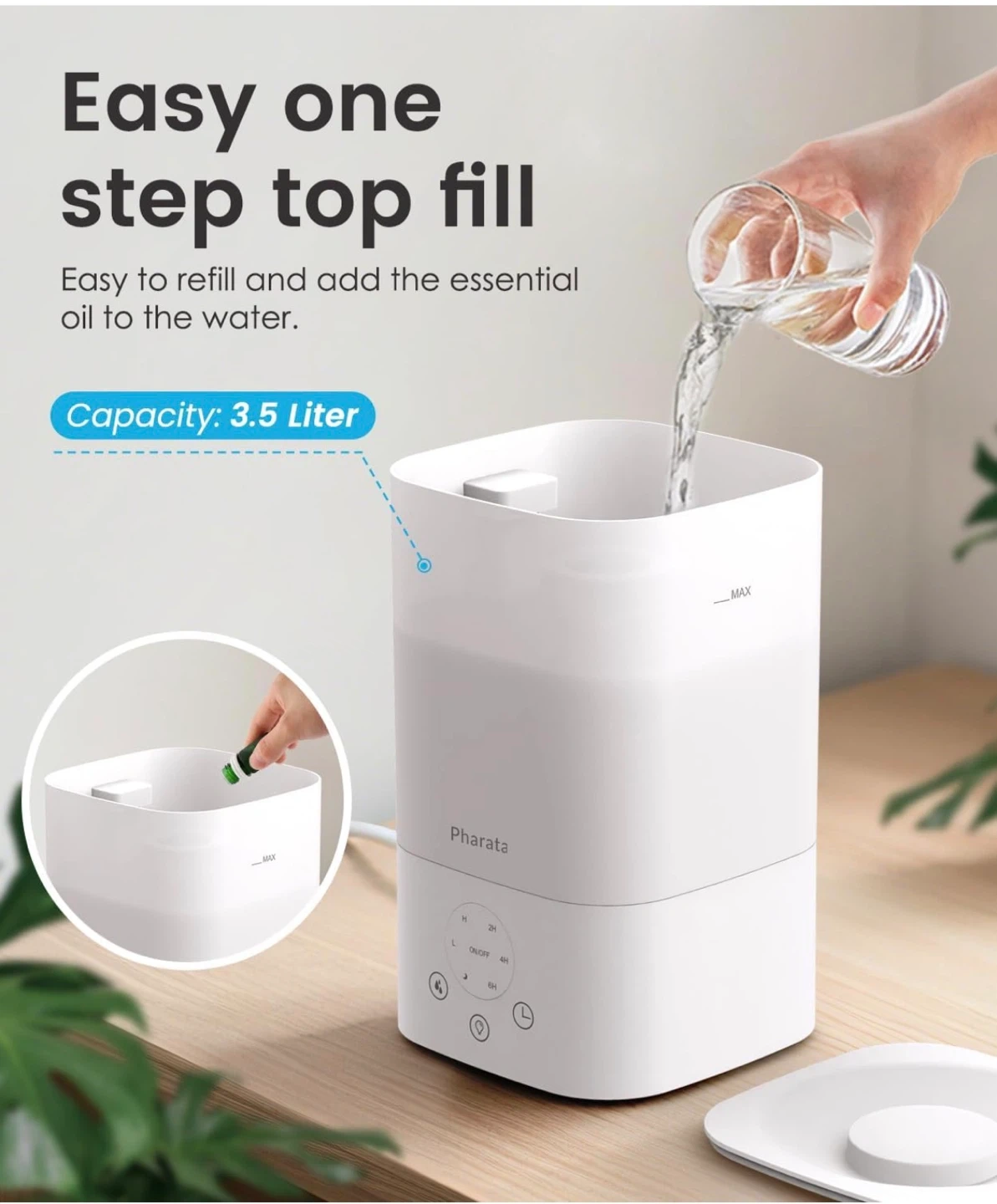 Humidifiers for bedroom, 3.5L Cool Mist Humidifier for Large Room, Top Fill Essential Oil Diffuser for Baby & Plant, Auto Shut-Off, Quiet Operation, White.