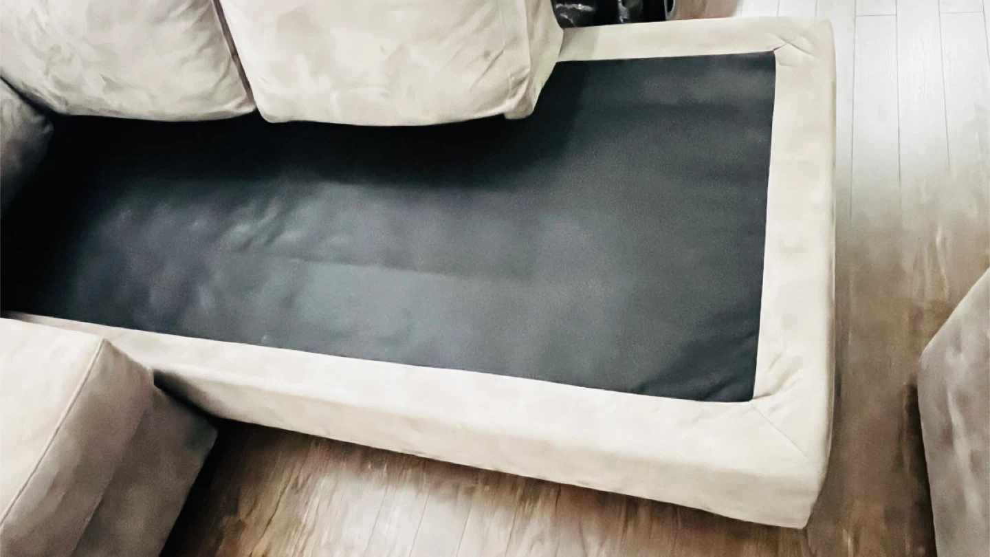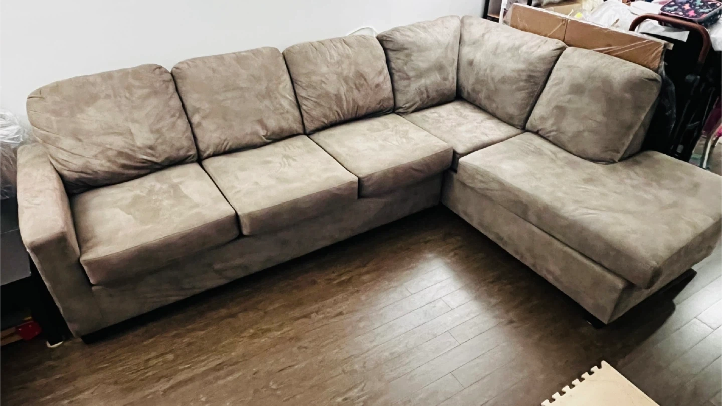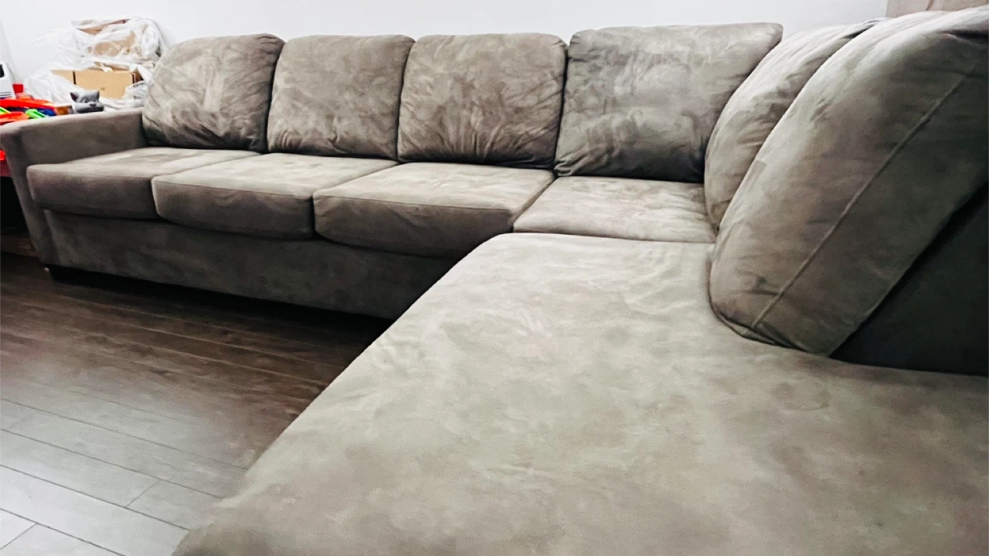 This sectional has been kept under protection sheets 24/7 to shield it from kids, dust, and daily life. The fabric underneath is pristine.