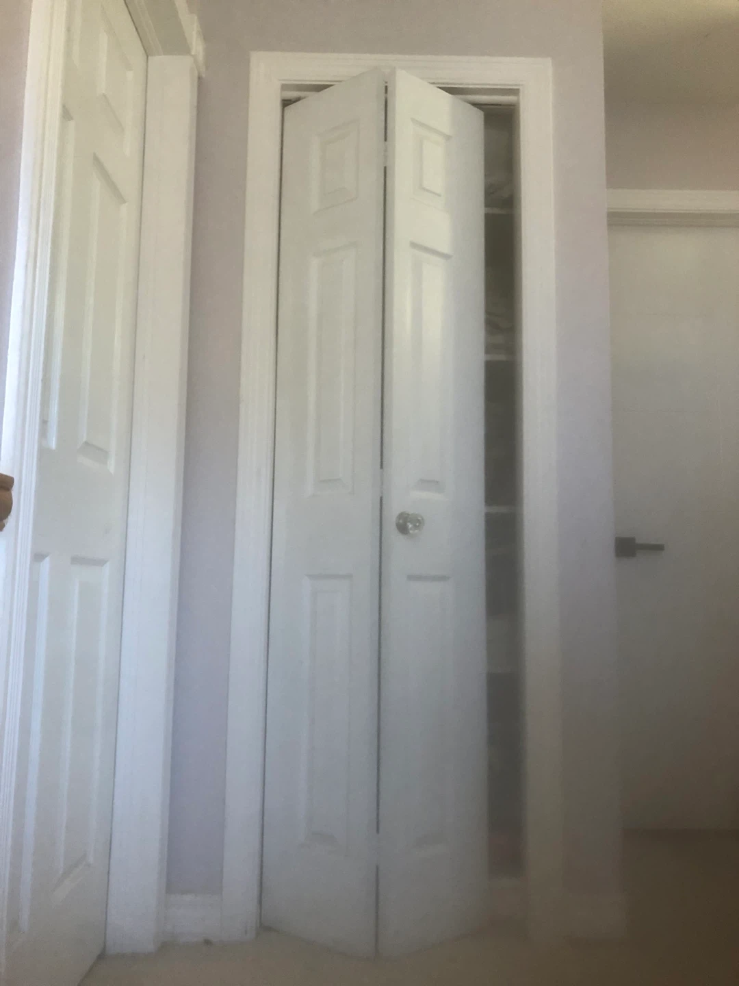 White bi-fold closet doors, excellent condition. 2 panels total width 24 inches by height 80 inches with hardware and handle. Pick up between Southdown RD & Truscott Dr. in Mississauga ON.
