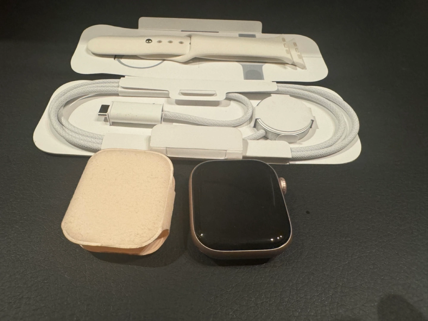 Apple Watch Series 10 with sport band and USB-C charging cable.