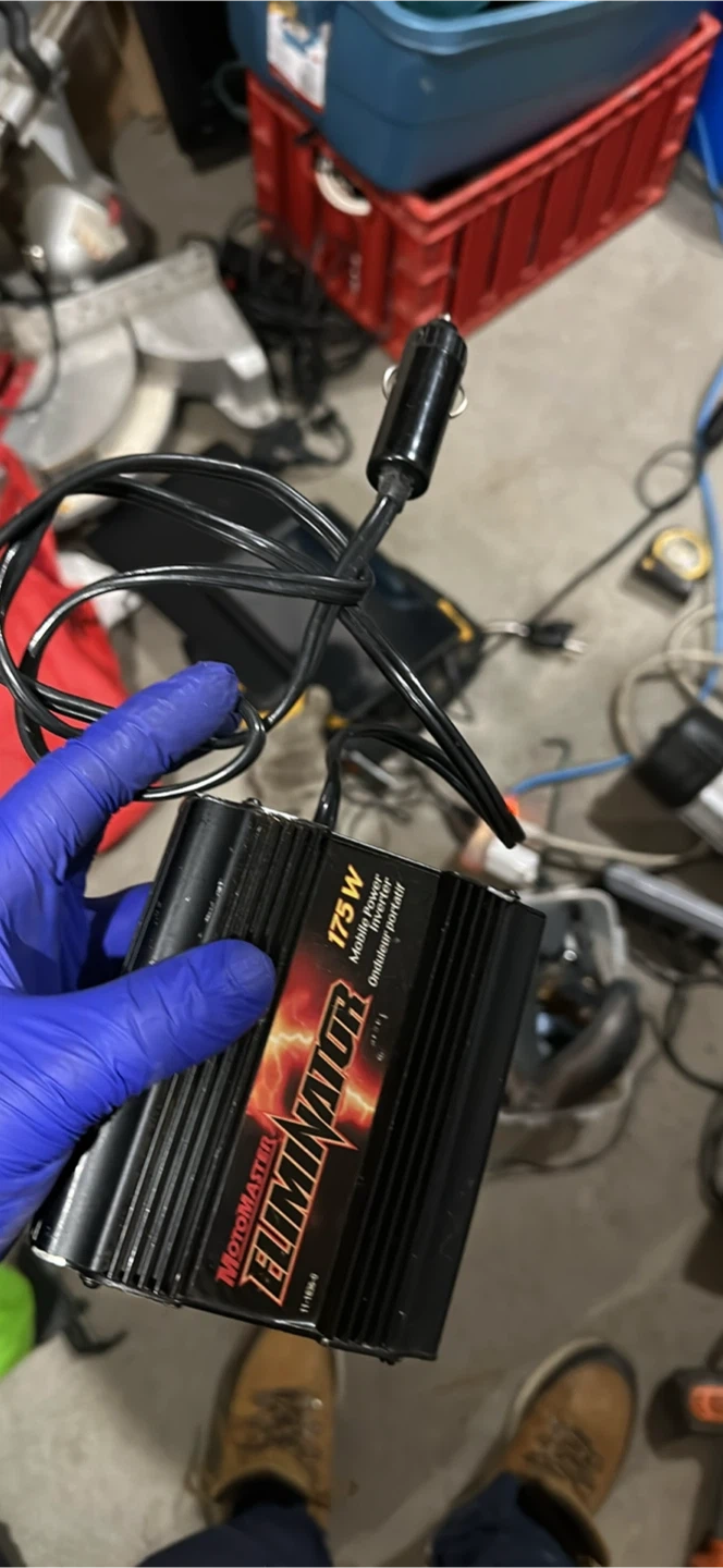 This Motomaster Eliminator mobile power inverter offers 175W of power. It's great for charging devices on the go! Plugs into a car's cigarette lighter socket.