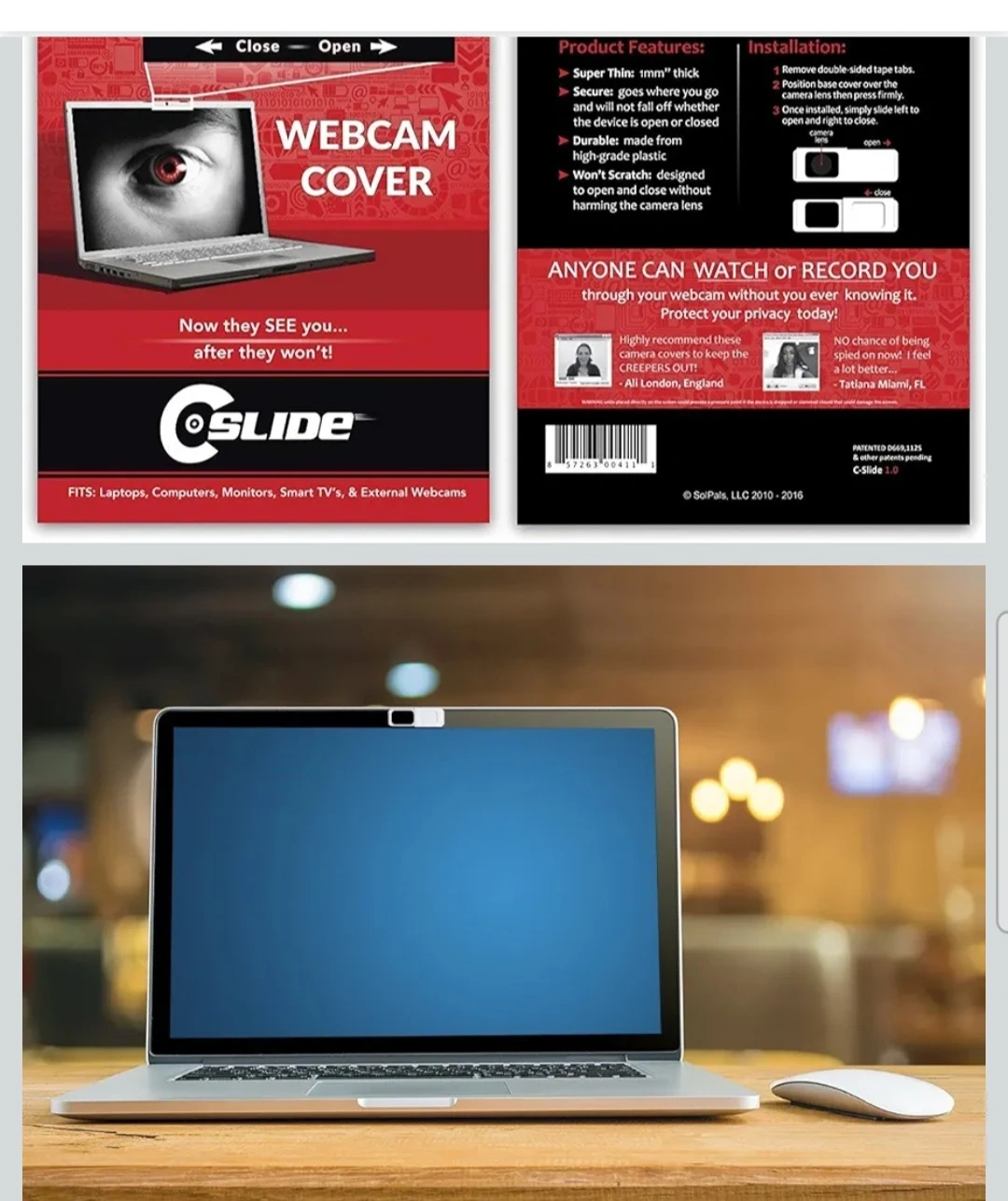 This Coslide webcam cover helps protect your privacy by covering your camera when not in use. It's super thin and made from high-grade plastic. Installation is easy with included double-sided tape. Protect your privacy now!