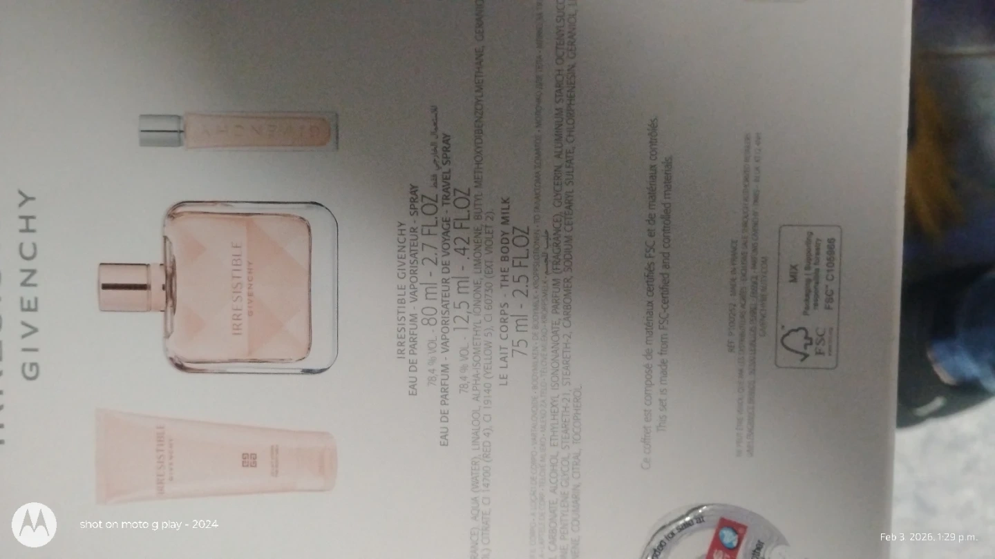 This is a Givenchy Irresistible gift set. It includes an 80ml Eau de Parfum spray, a 75ml body milk, and a 15ml travel spray. Makes a lovely gift!🏆