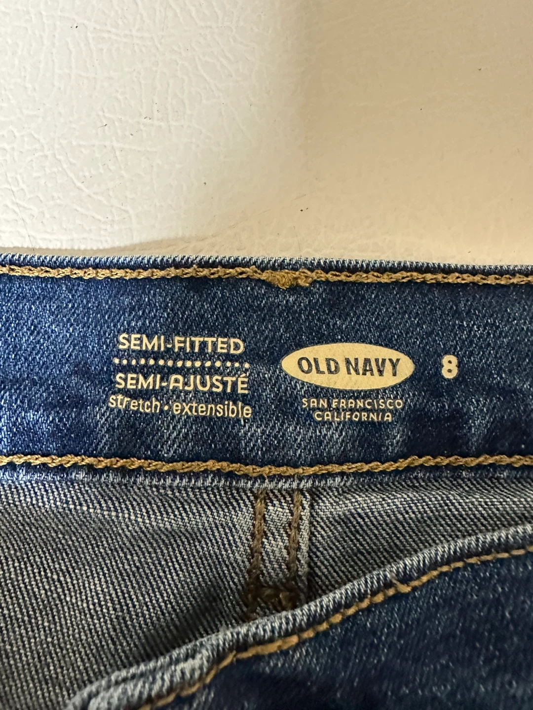 Selling a pair of Old Navy denim shorts in size 8. They are in great condition and have a cute, frayed hem. Perfect for summer!