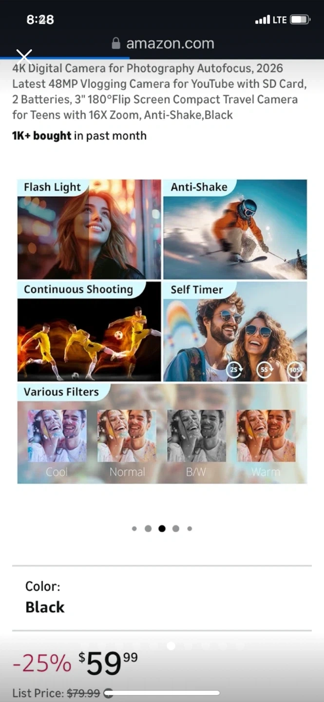 Big sales!! 4K Digital Camera Autofocus, 2026 latest 48MB Black