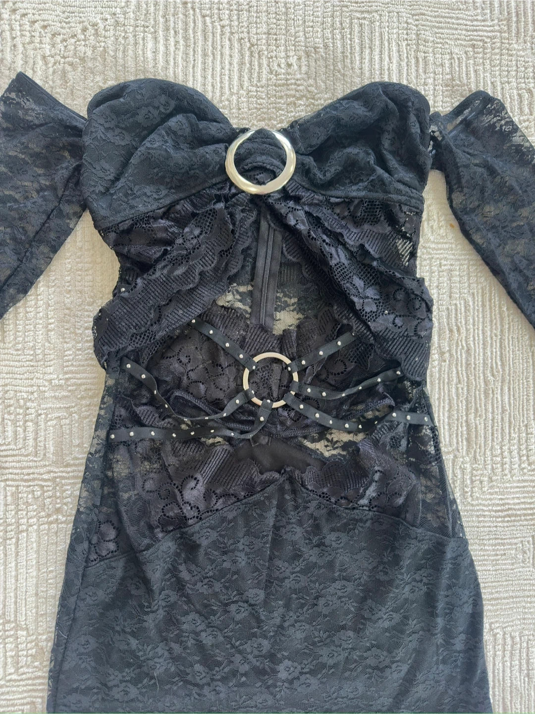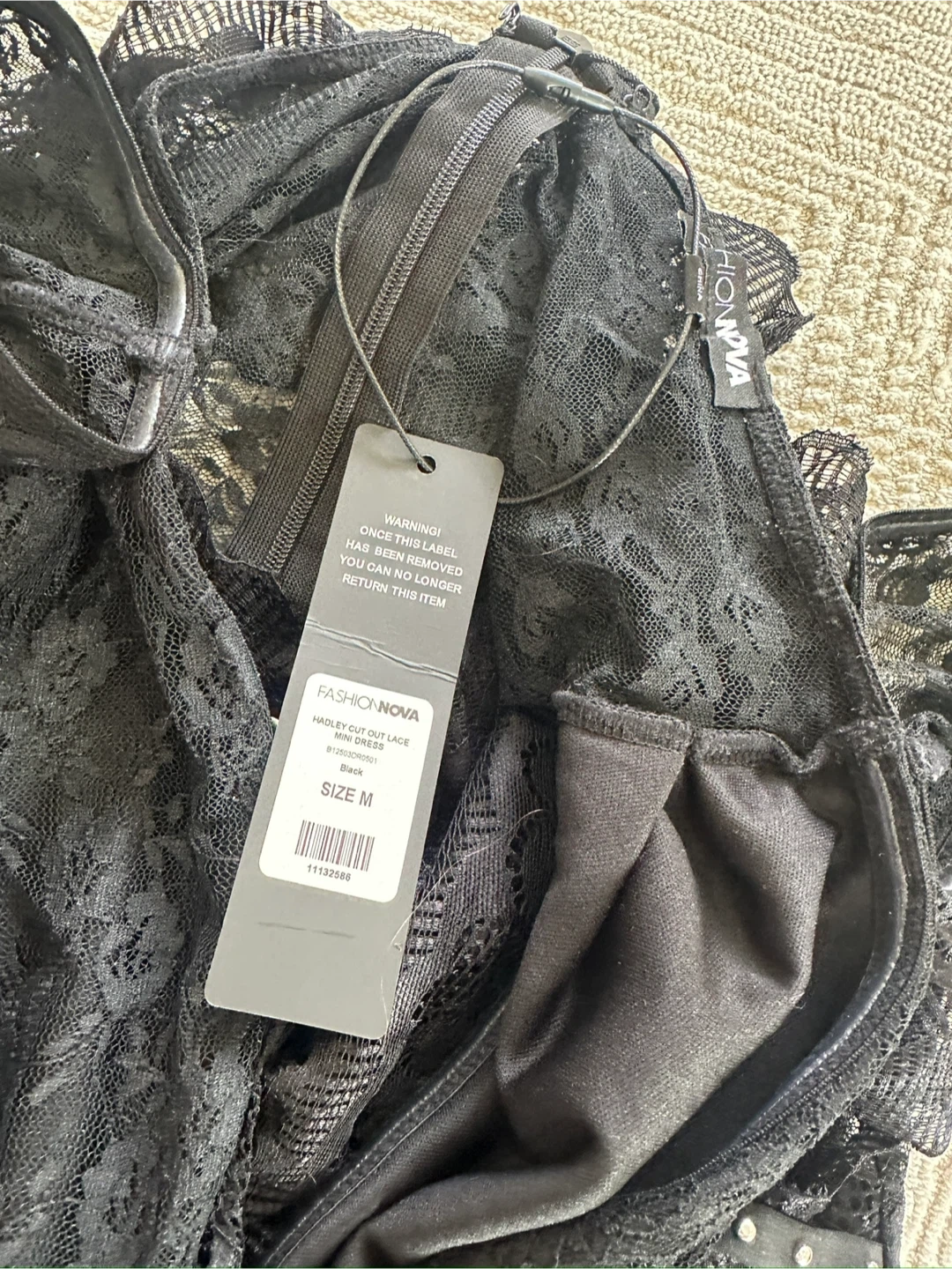 New Fashion Nova Black Lace Cut Out Mini Dress Size M