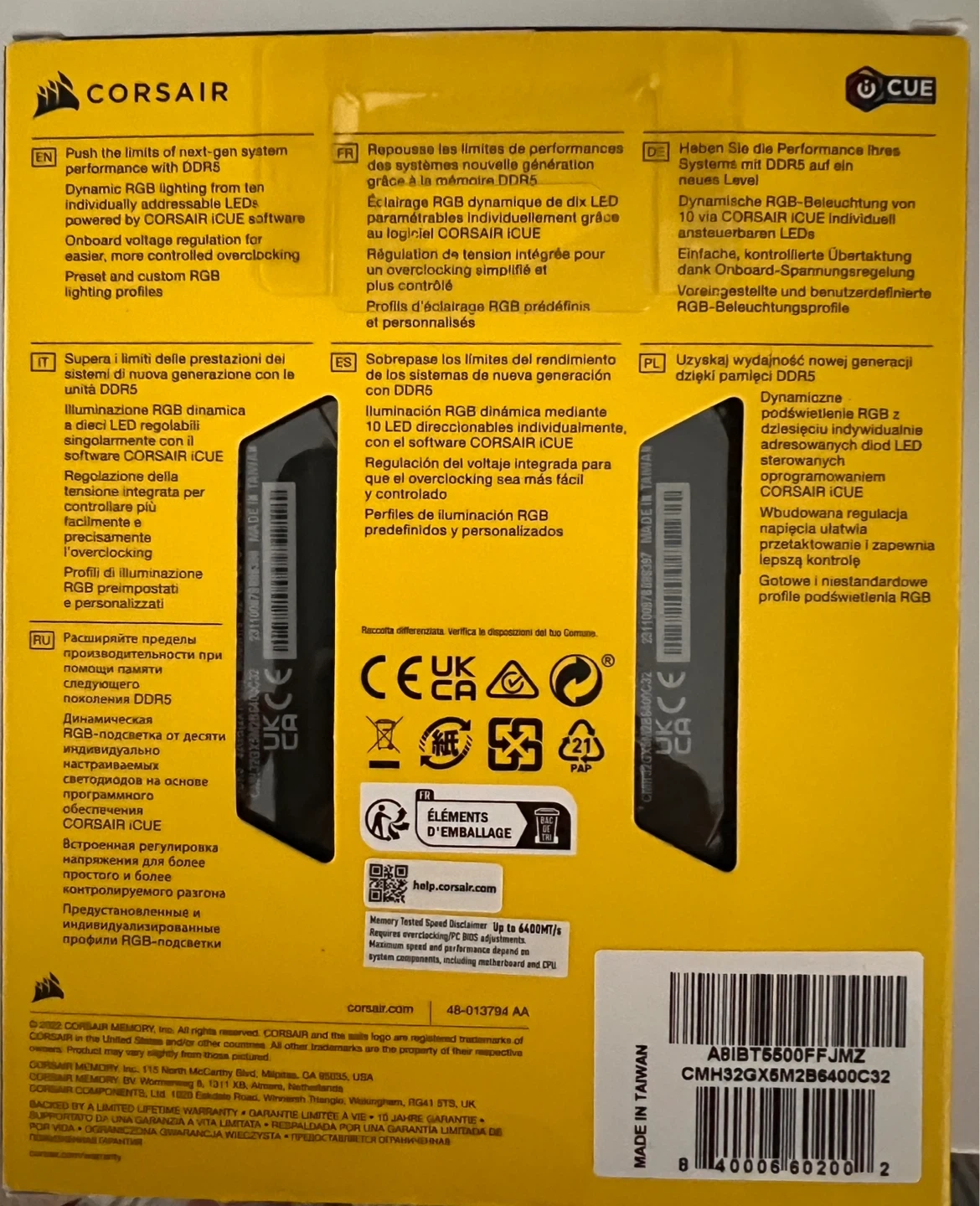 Corsair Vengeance RGB DDR5 performance DRAM. This kit includes 2x16GB modules running at 6400MHz with XMP support. They’re brand new as they were a RMA replacement for a previously faulty kit. Not used aside for testing purposes to ensure they worked optimally.