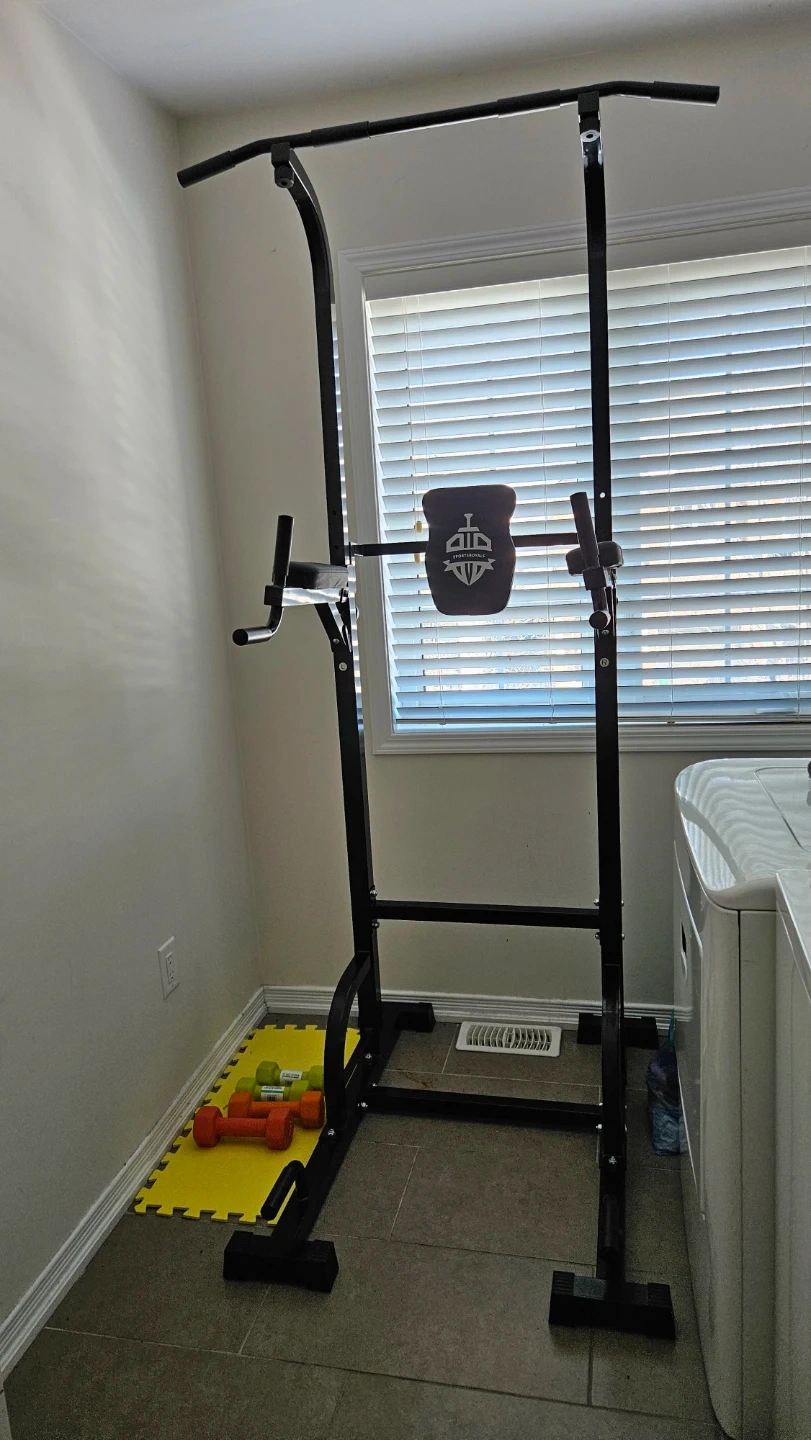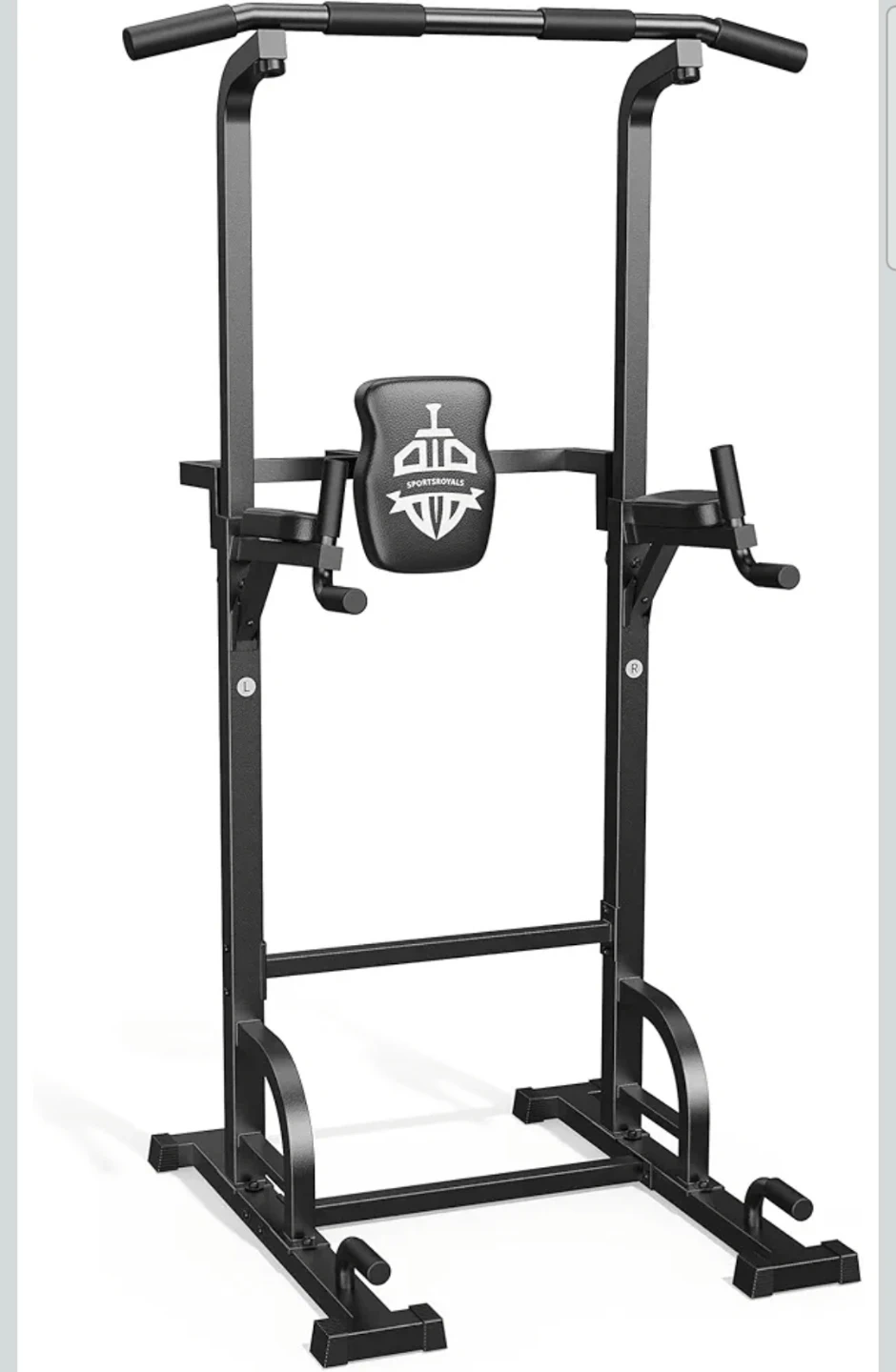 This power tower offers a full-body workout with multiple stations. It's designed for users between 4'8" and 6'6" tall. Built for pull-ups, dips, leg raises, and push-ups.