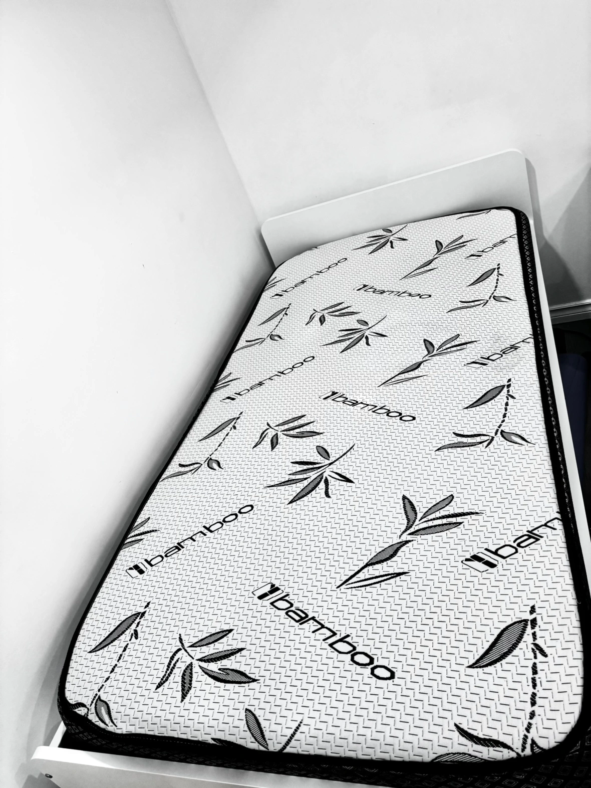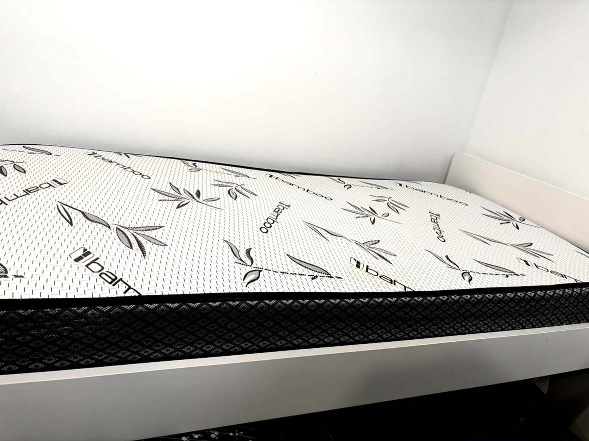 Got the mattress 6 months ago but I’m moving so I don’t need it anymore. Is a bamboo twin mattress, very comfortable. It can include bed sheets and protector.