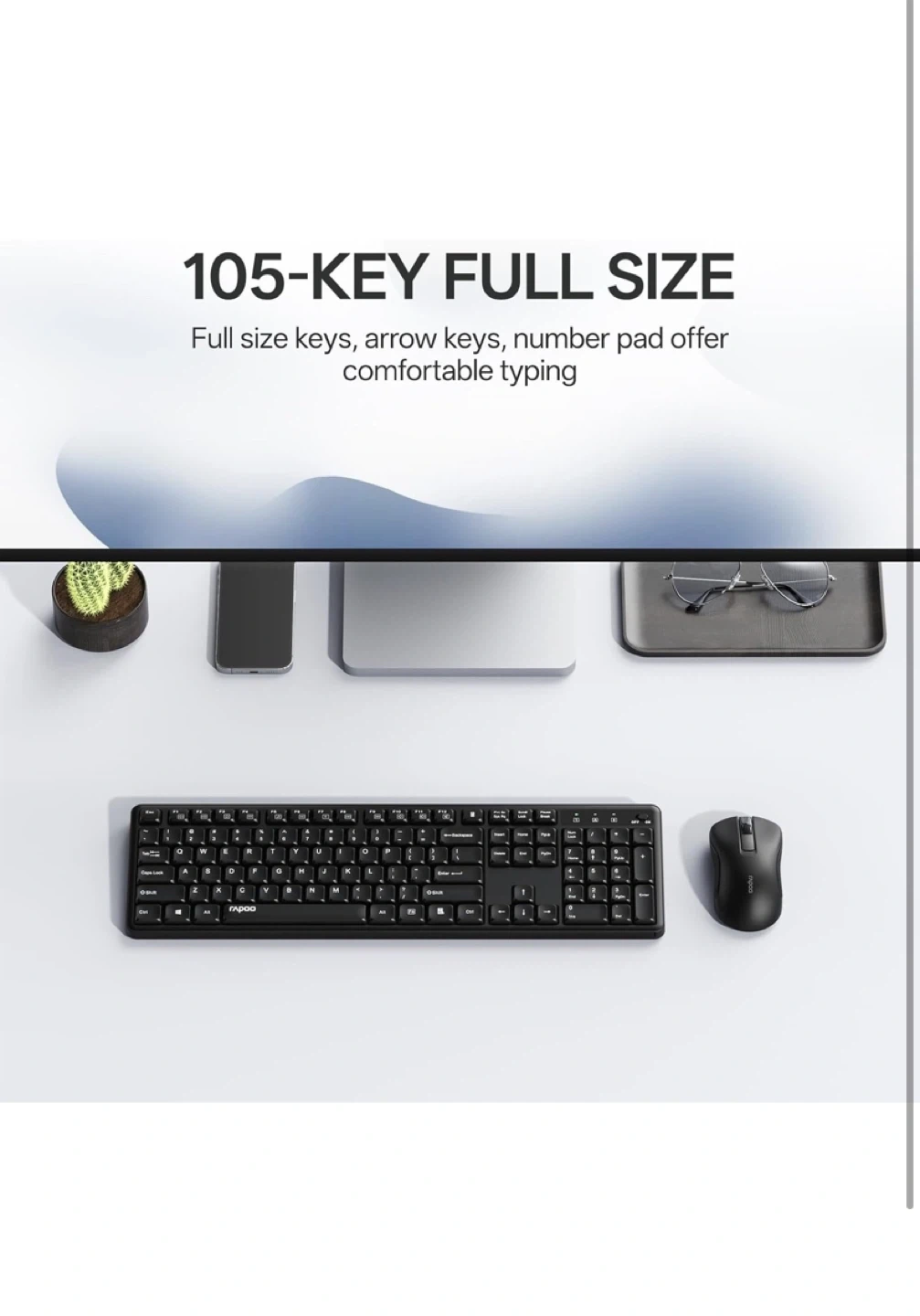 Rapoo 105-Key Full Size Wireless Keyboard and Mouse Combo