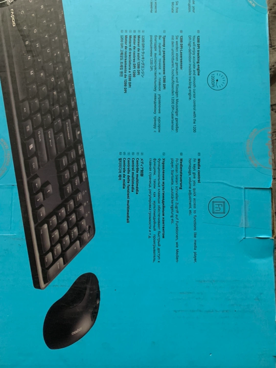 This Rapoo wireless keyboard and mouse combo features a 105-key full-size layout with a number pad for comfortable typing. It's designed for easy plug-and-play setup. The mouse offers 1200 DPI tracking for smooth cursor control.