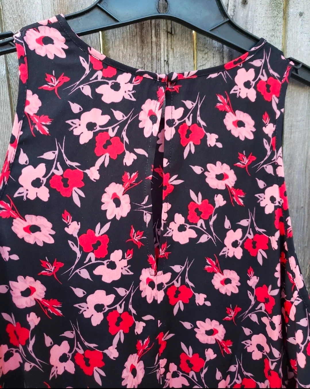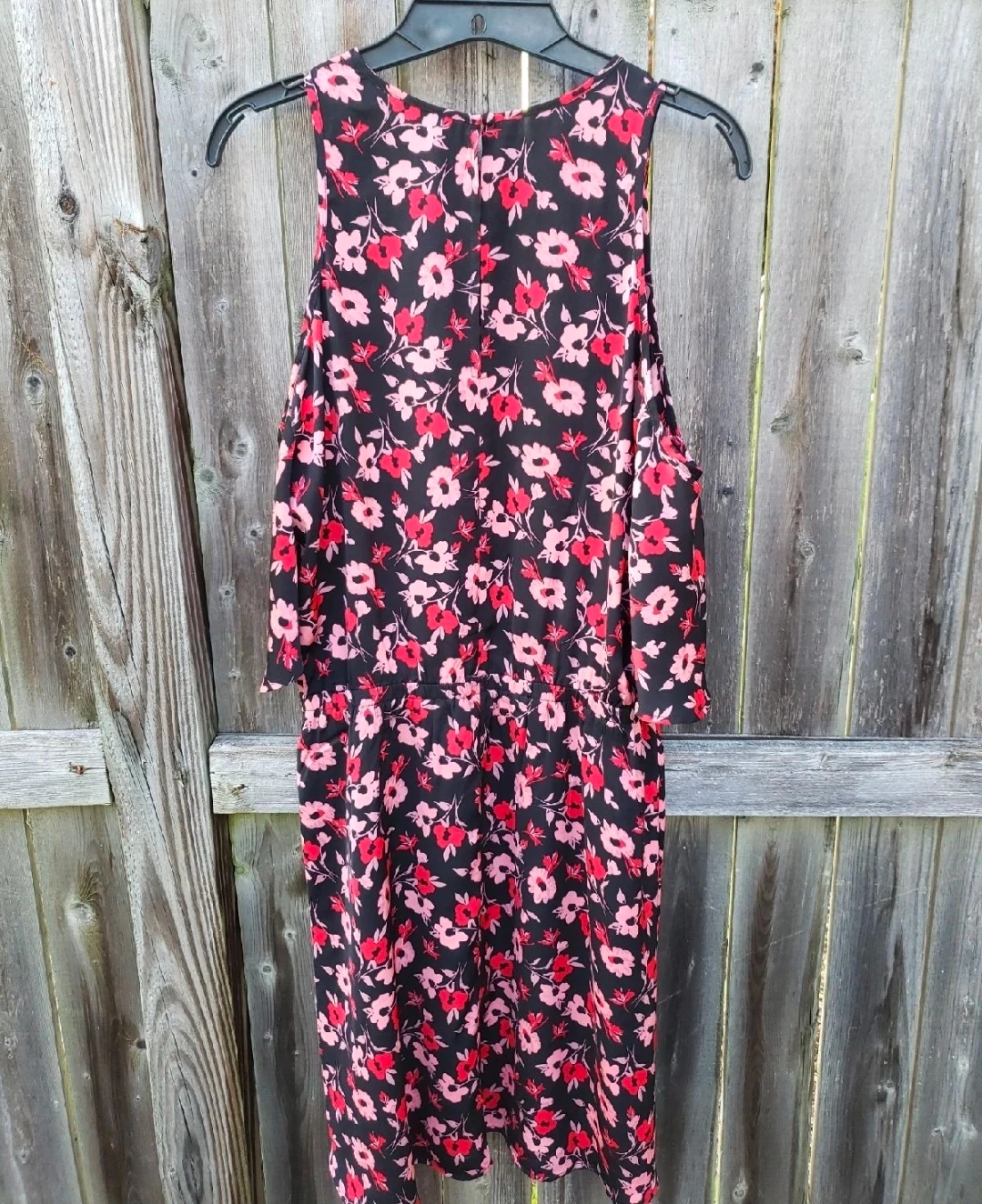 This is a cute Express dress with a floral pattern! It has a cold shoulder design and is perfect for a casual outing or a summer day