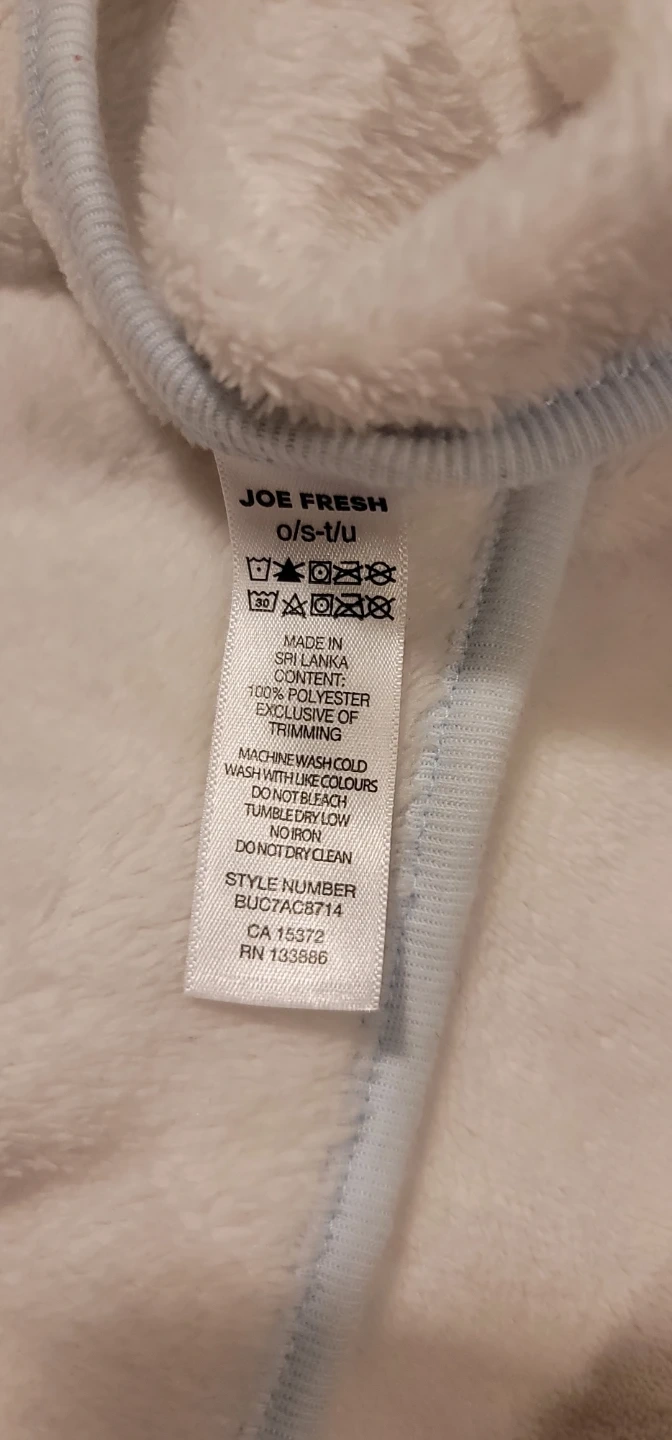 This cozy Joe Fresh baby blanket is made from 100% polyester. It's a one-size-fits-all item, perfect for keeping little ones snug. Care instructions include machine wash cold and tumble dry low.