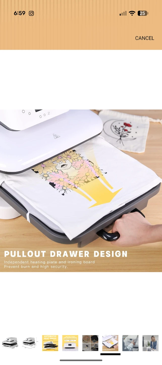 This automatic heat press features a pullout drawer design for safety and ease of use. It offers multiple modes for quick setup and an accurate digital temperature display. It includes auto shut-off after 15 minutes of inactivity.
