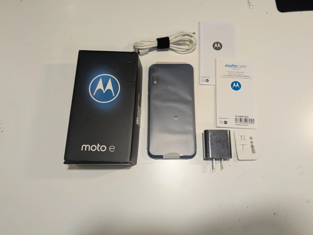 This a Motorola e 2020, used, works well, battery life is good, can last up to 12 hours on full charge( depends how you use it). Phones operating system is an Android 10. Phone comes with a 256gb SanDisk sd card, and a case. * let me know if you want the sticker on the case removed*
