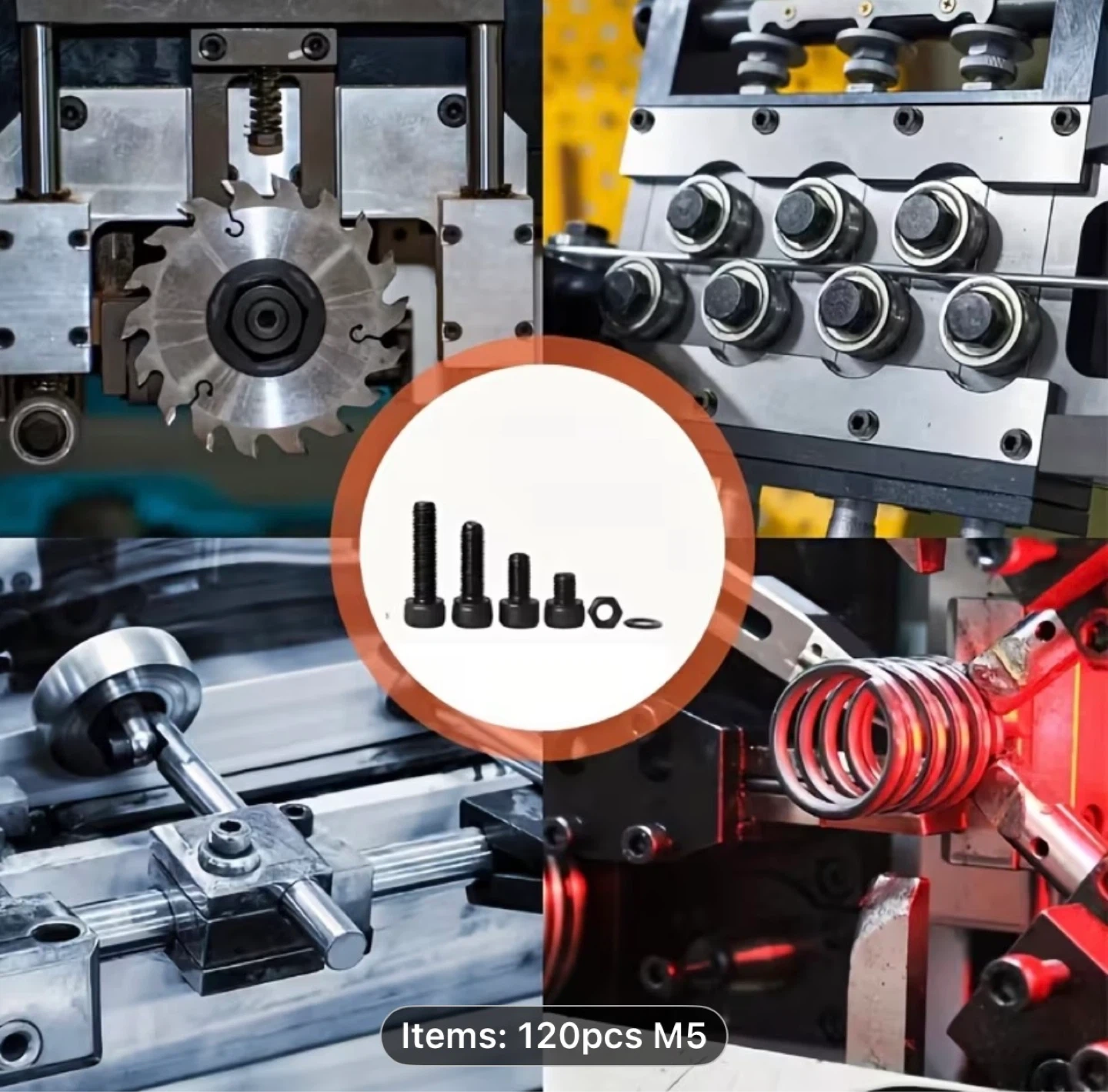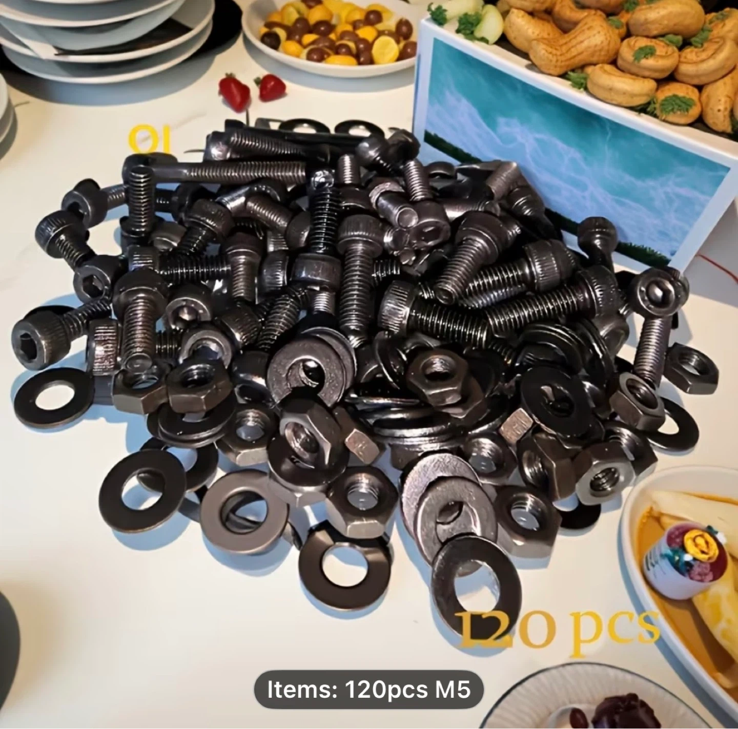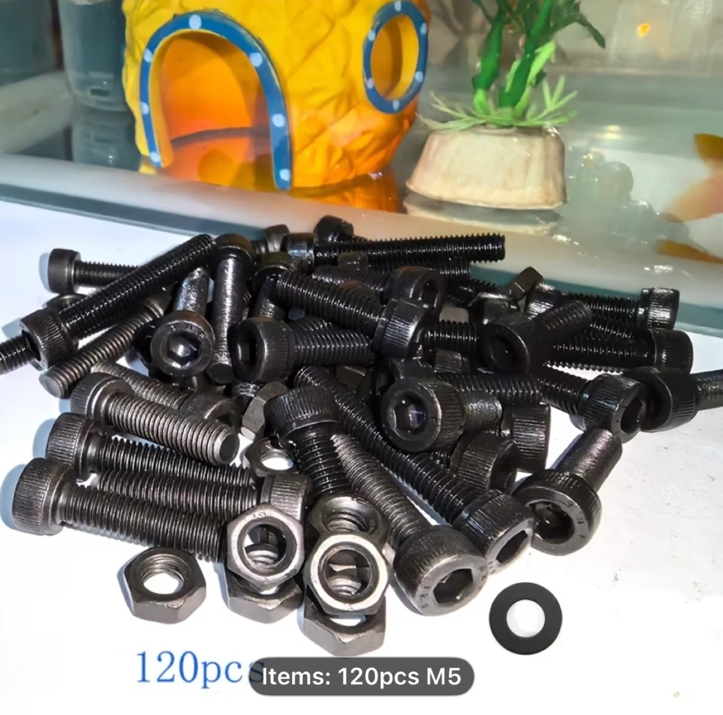 A Set of 120 Black Hex Screws And Nut Washers, M5 Size