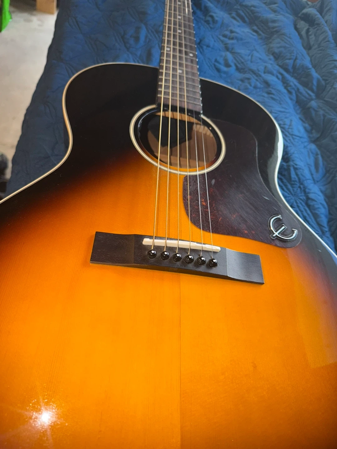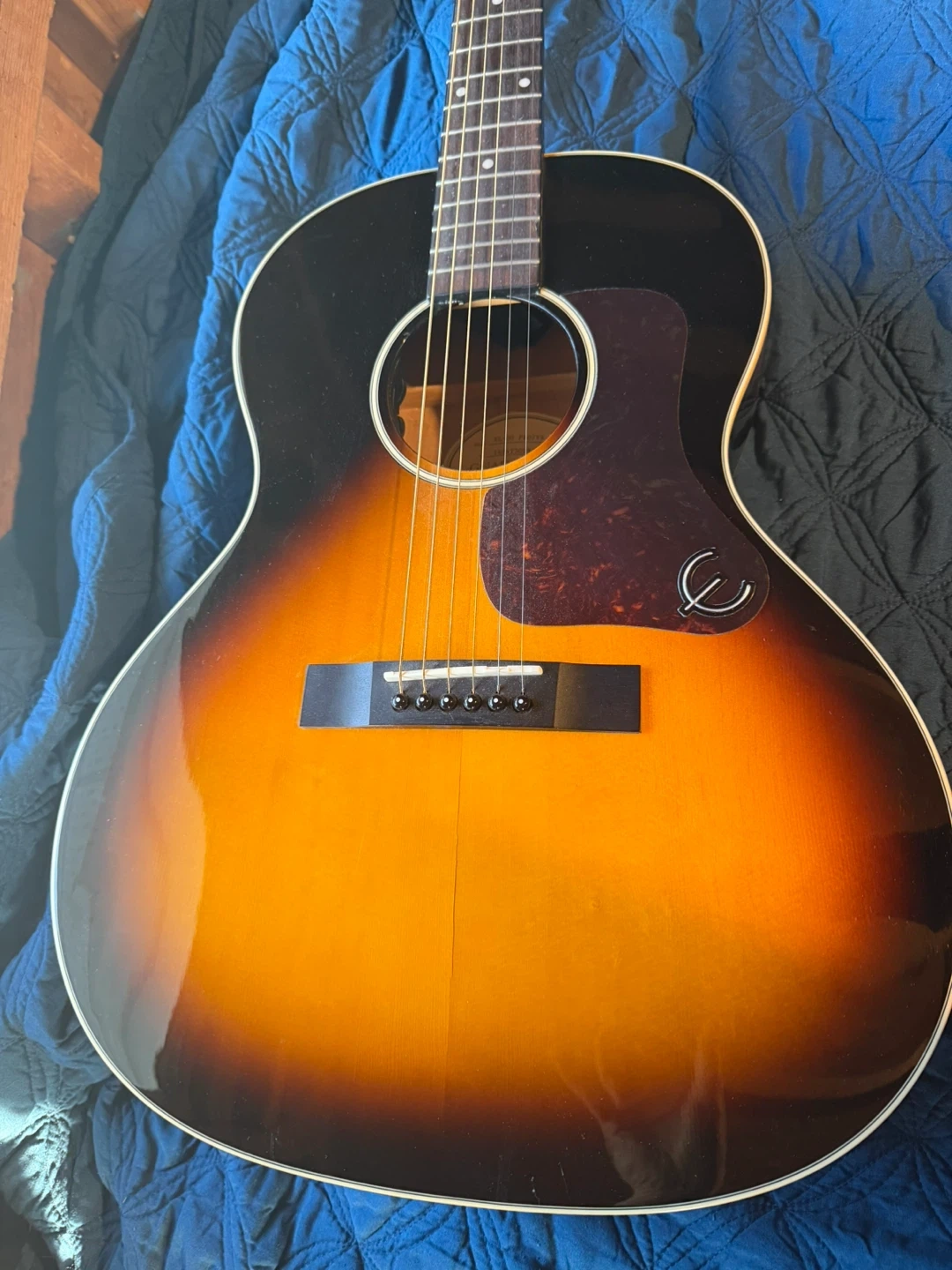 Selling an Epiphone EL-00 Pro acoustic guitar. It's in good condition and ready for a new home. It has a sunburst finish that looks great! It’s been very well taken care of. It is set up to plug in. It’s been sitting in my garage for 4 months so it needs a tune up but it’s a great little guitar. I put new strings on it a month before I put it in storage.