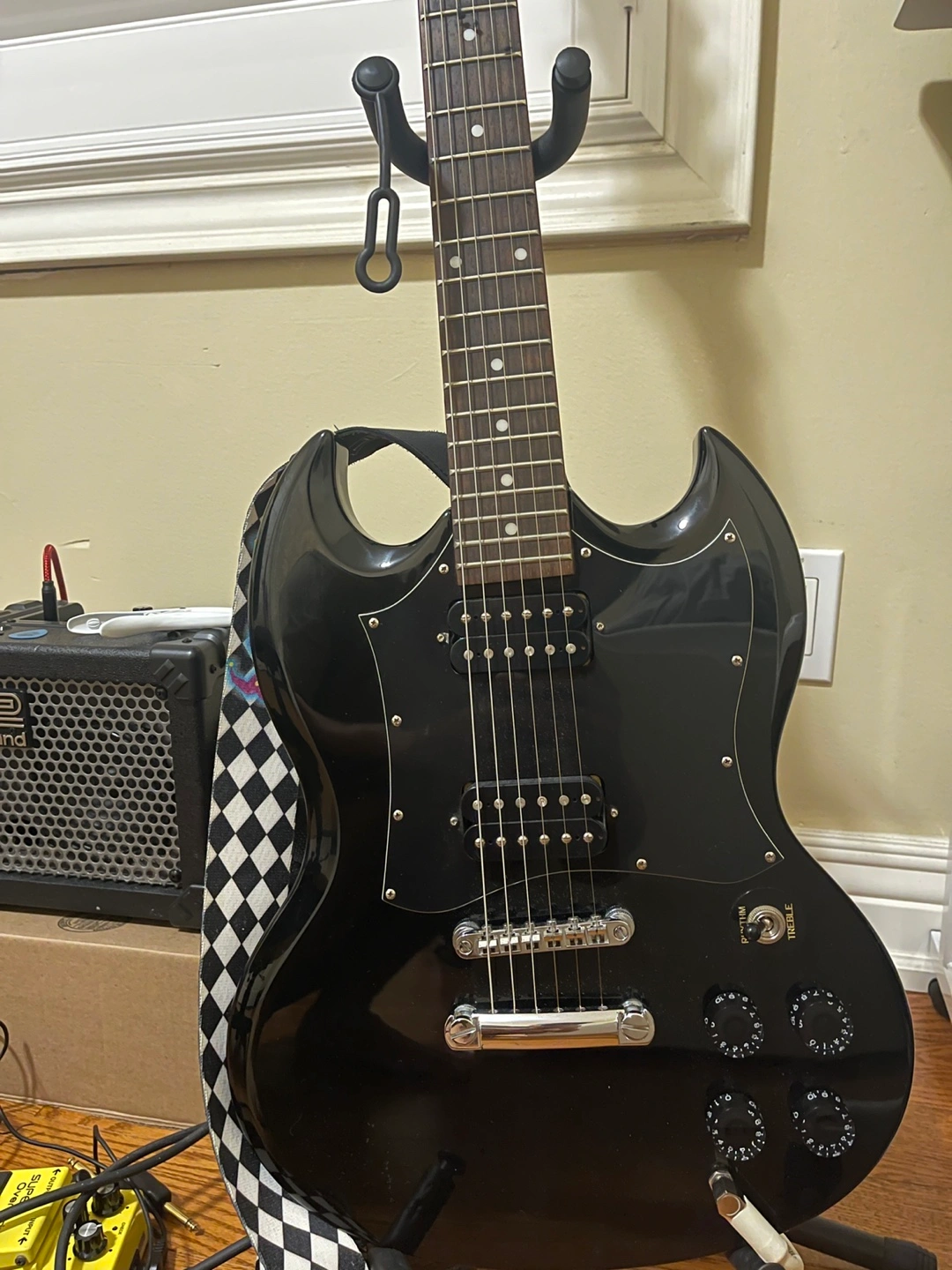 Selling my Epiphone SG electric guitar in black! It's in great shape and ready for a new home. Super comfortable action not so low and high. It has Elixir strings.