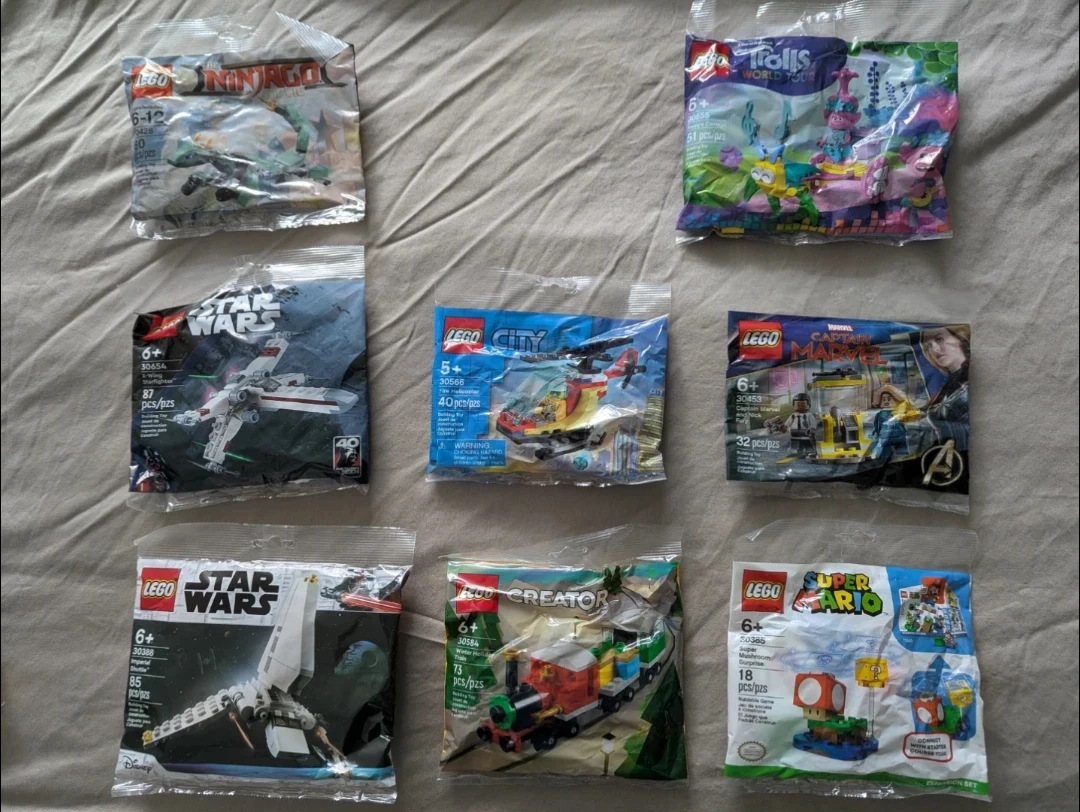 Selling assoryed poly bags from various Lego themes. All unopened.