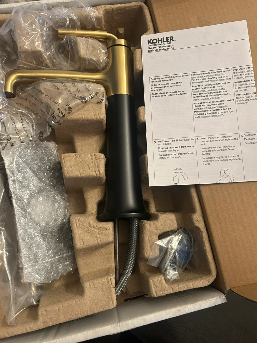 Kohler Matte Black W/Moderne Brass accent Bathroom Faucet