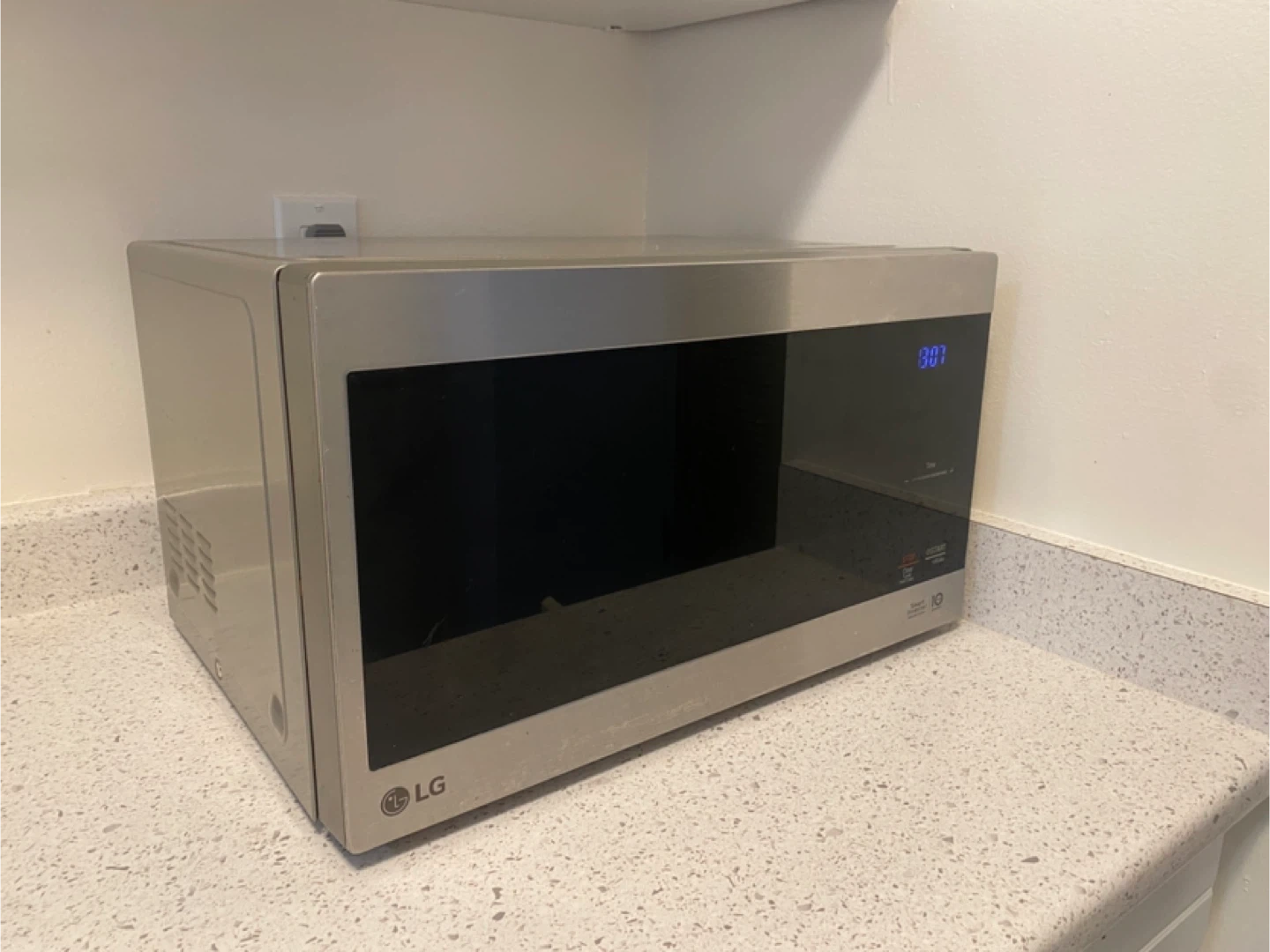 This is a countertop LG microwave with a stainless steel finish. It features Smart Inverter technology. Measures 20.6" W x 11.7" H x 16.2" D. pick up only!