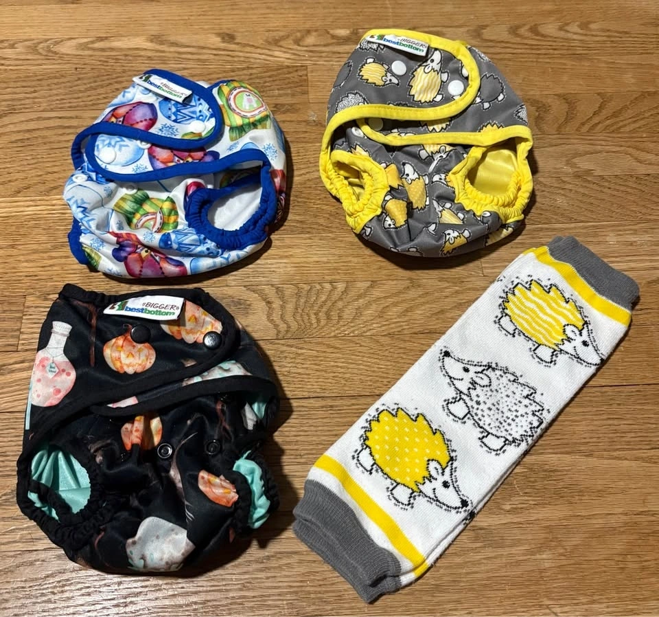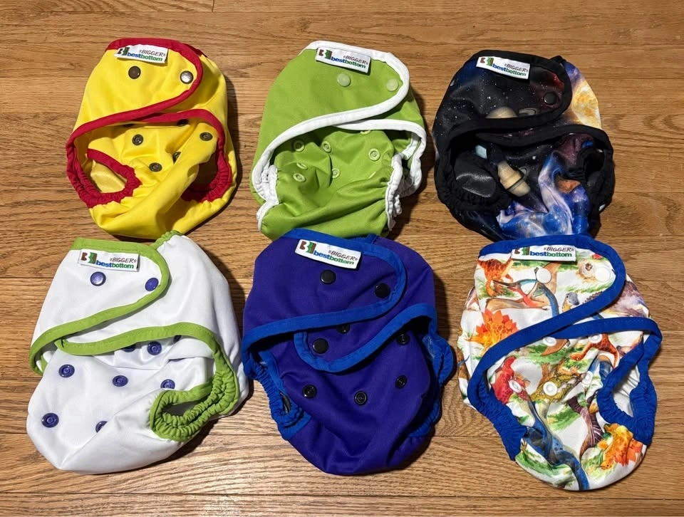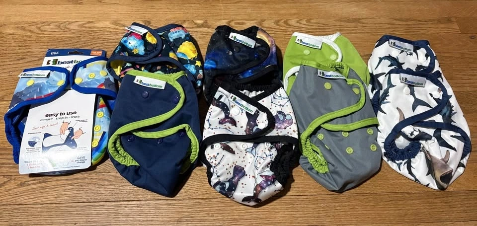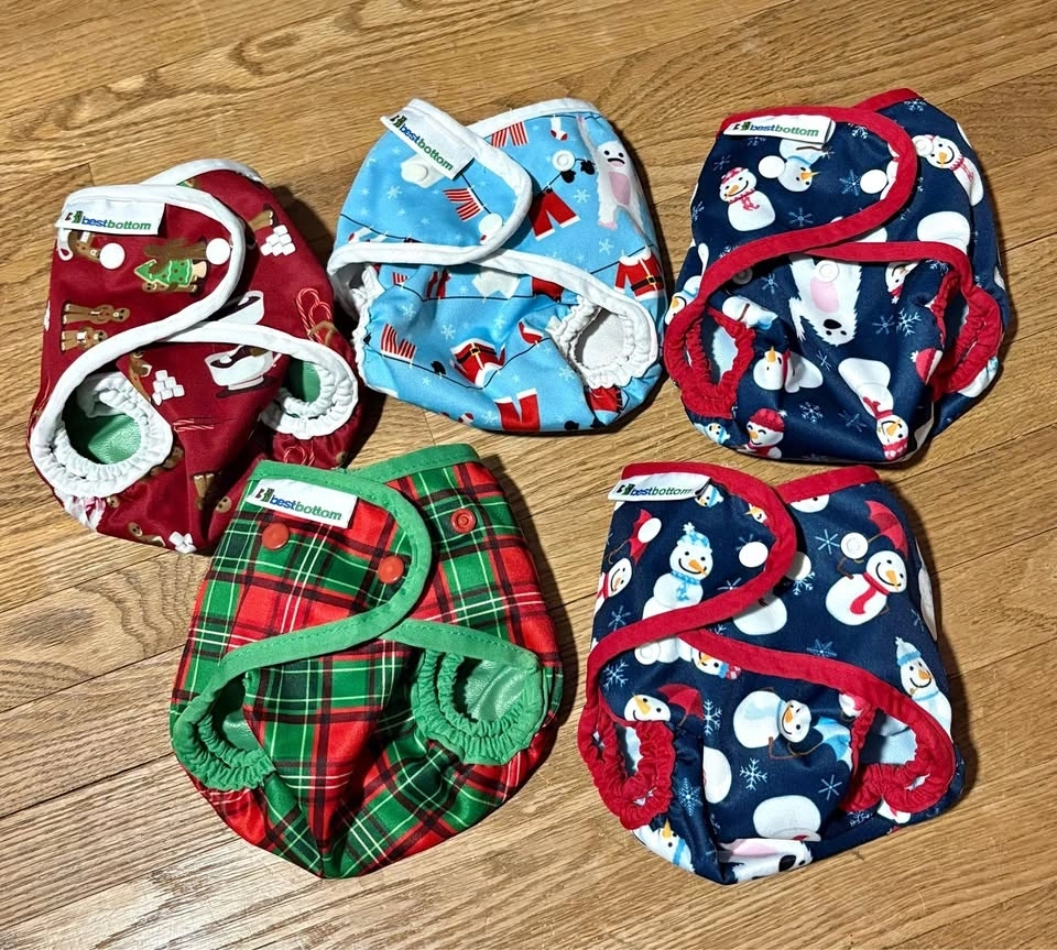 Selling a variety of cloth diaper items. Includes 9 Bigger Best Bottoms AI2, 9 Best Bottoms AI2 (1 brand new in package), 5 Yeti Christmas Best Bottoms AI2, and 1 Best Bottoms gift set in Fox Trot print. Also available are 1 pair of hedgehog leg warmers, 7 large micro fleece inserts, 2 medium hemp inserts, 2 large hemp inserts, 3 Thirsties hemp, 2 Blueberry hemp doublers, 1 AMP hemp pre-fold, and 1 Easy Peasy hemp pre-fold. Additionally, there is 1 roll of AMP flushable liners, 4 Bella Luna diaper covers, 2 Bella Luna pocket diaper covers, 1 Bella Luna Bib, and 1 Bella Luna Dr. Seuss grow-with-me pantaloons. All items have been washed in Tide powder and covers were hung to dry. Snaps and elastics are in excellent condition. These were gently used in a large rotation. Willing to bundle or sell separately. Smoke-free, pet-friendly home.