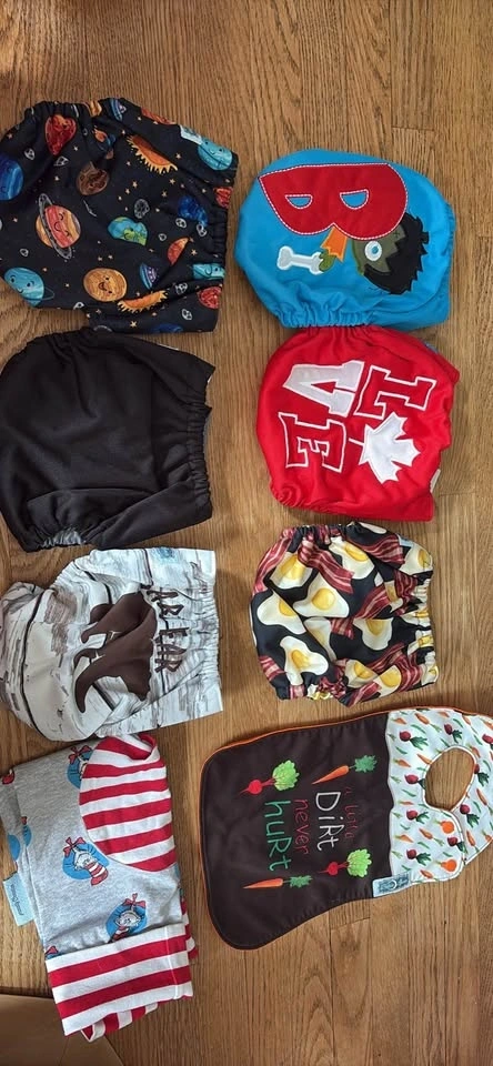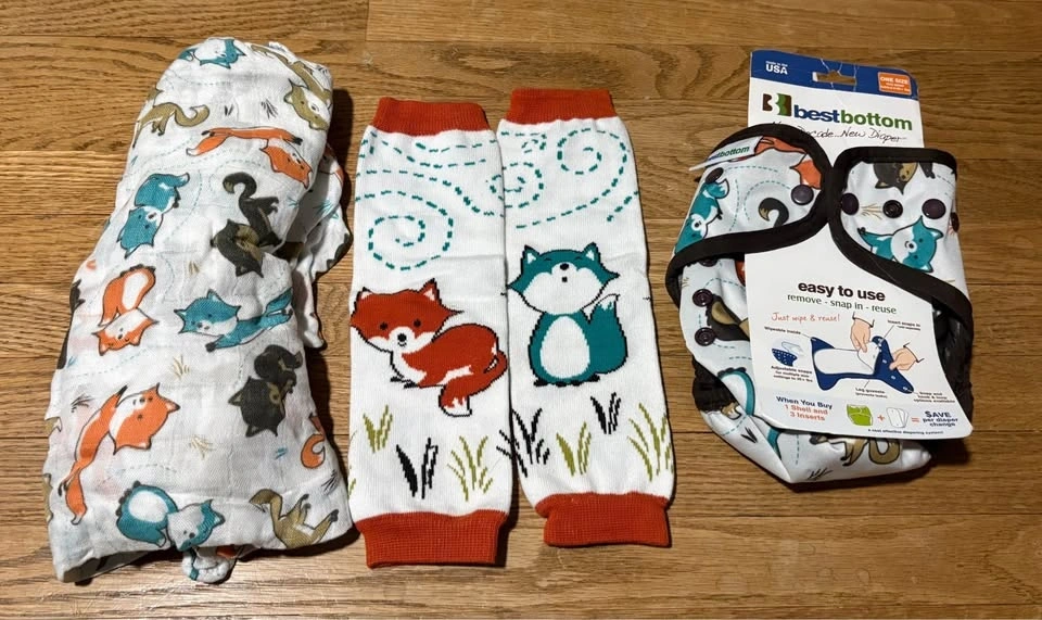 Selling a variety of cloth diaper items. Includes 9 Bigger Best Bottoms AI2, 9 Best Bottoms AI2 (1 brand new in package), 5 Yeti Christmas Best Bottoms AI2, and 1 Best Bottoms gift set in Fox Trot print. Also available are 1 pair of hedgehog leg warmers, 7 large micro fleece inserts, 2 medium hemp inserts, 2 large hemp inserts, 3 Thirsties hemp, 2 Blueberry hemp doublers, 1 AMP hemp pre-fold, and 1 Easy Peasy hemp pre-fold. Additionally, there is 1 roll of AMP flushable liners, 4 Bella Luna diaper covers, 2 Bella Luna pocket diaper covers, 1 Bella Luna Bib, and 1 Bella Luna Dr. Seuss grow-with-me pantaloons. All items have been washed in Tide powder and covers were hung to dry. Snaps and elastics are in excellent condition. These were gently used in a large rotation. Willing to bundle or sell separately. Smoke-free, pet-friendly home.