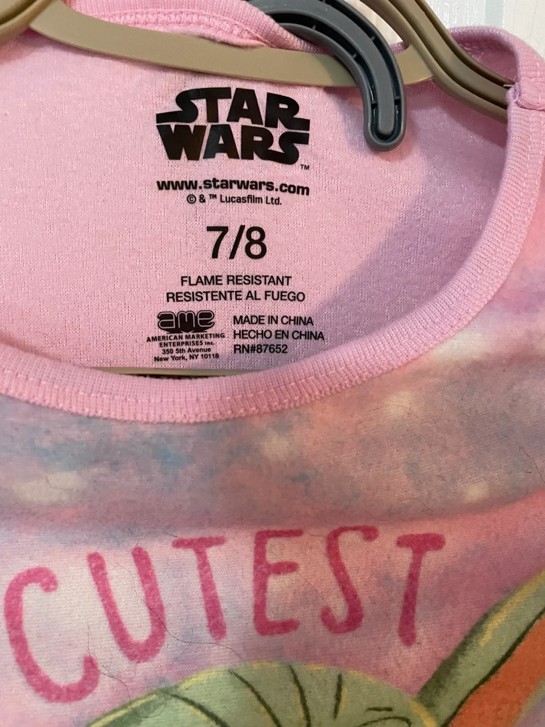 These adorable Star Wars pajamas feature Baby Yoda! They are a size 7/8 and in great condition. Perfect for any young Star Wars fan!