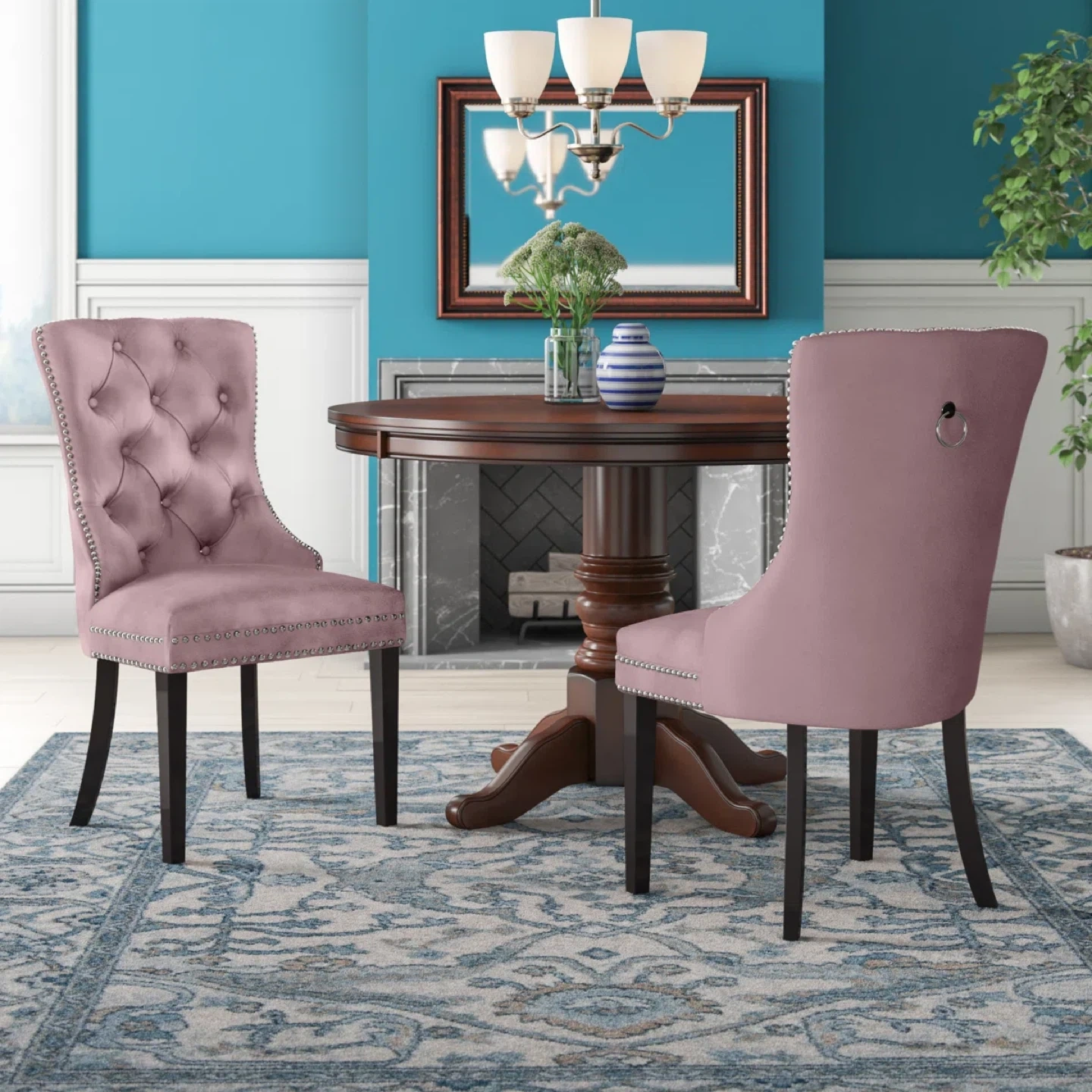 Pink Velvet Tufted Dining Chair