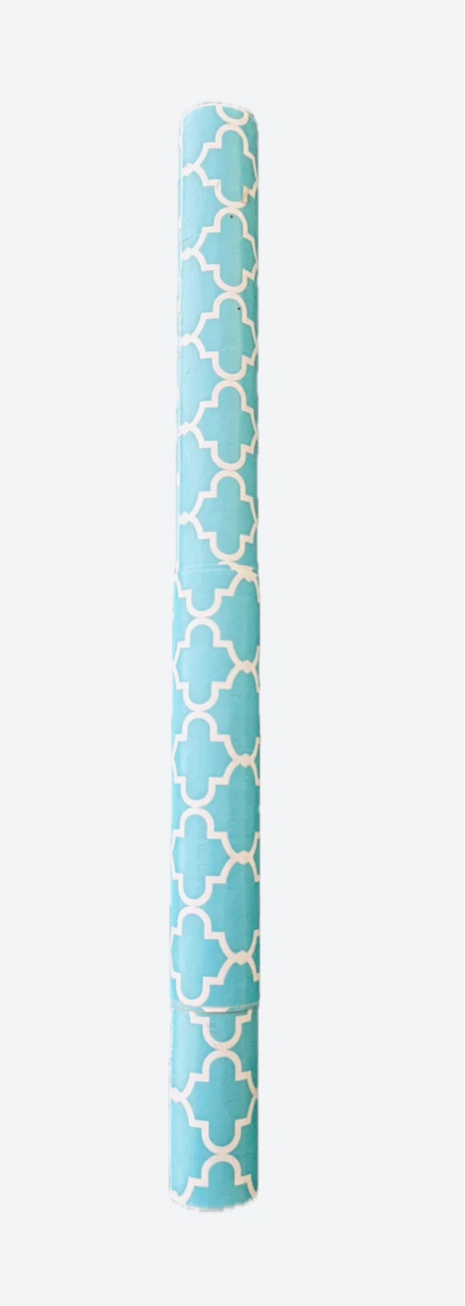 This roll of contact paper features a stylish turquoise and white quatrefoil pattern. It's perfect for DIY projects & crafts, lining cupboards or drawers.