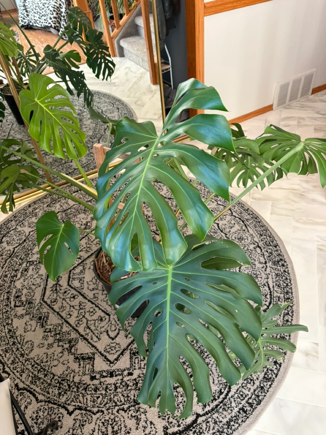 Selling a healthy monstera plant. It's a beautiful addition to any home and adds a touch of green to your space. The leaves are vibrant and full, ready to thrive in a new environment