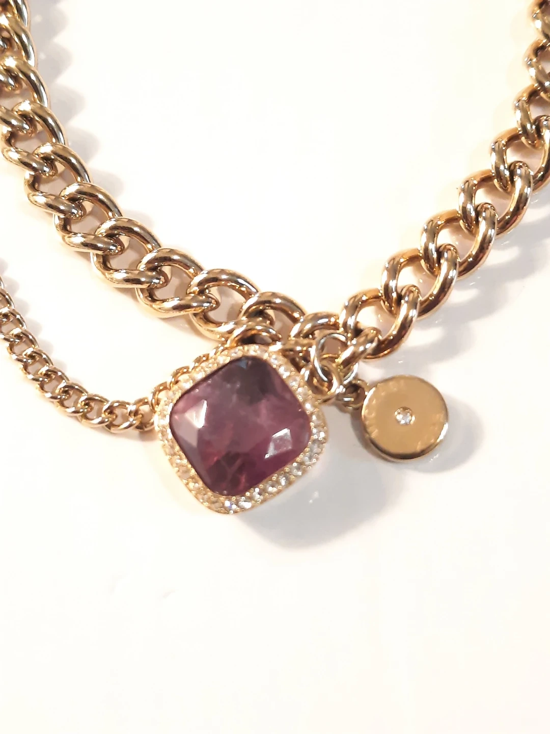 This Michael Kors set includes a rose gold tone chain bracelet with a purple gem amethist,charm and a matching pair of rose gold tone drop earrings featuring star details with cubic zirconia. It's a stylish accessory set.