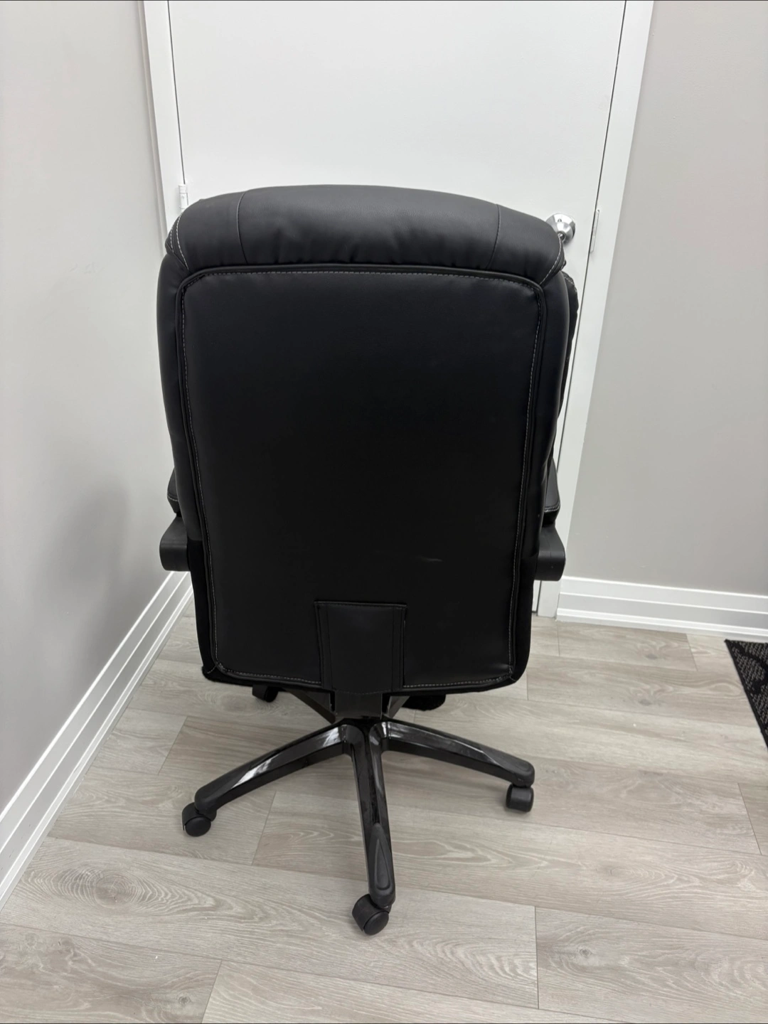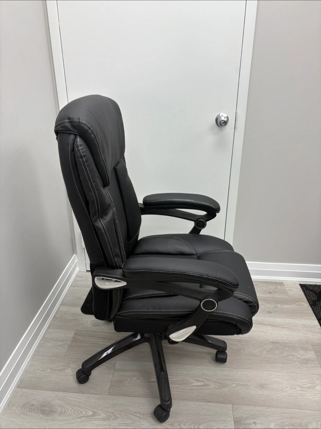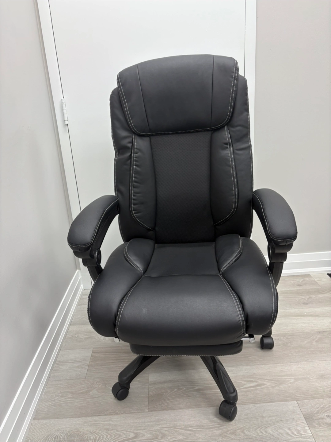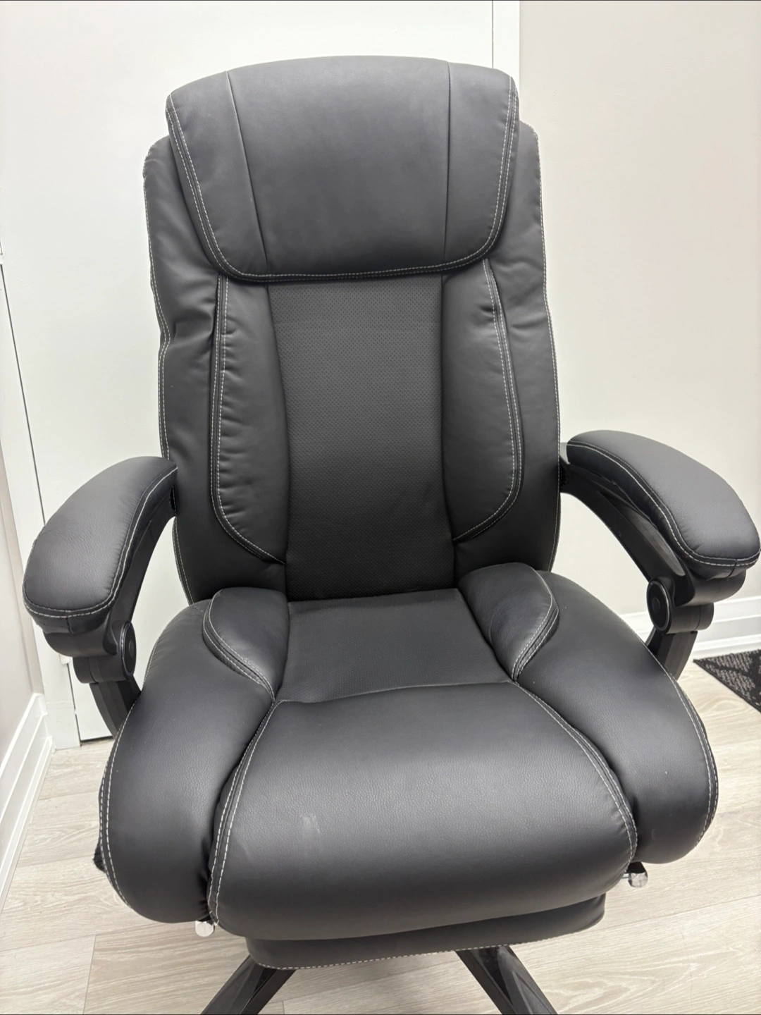 Selling a comfortable black executive office chair. It features a high back and padded armrests for extra support during long workdays. The chair is in great condition and ready to enhance your home office setup!