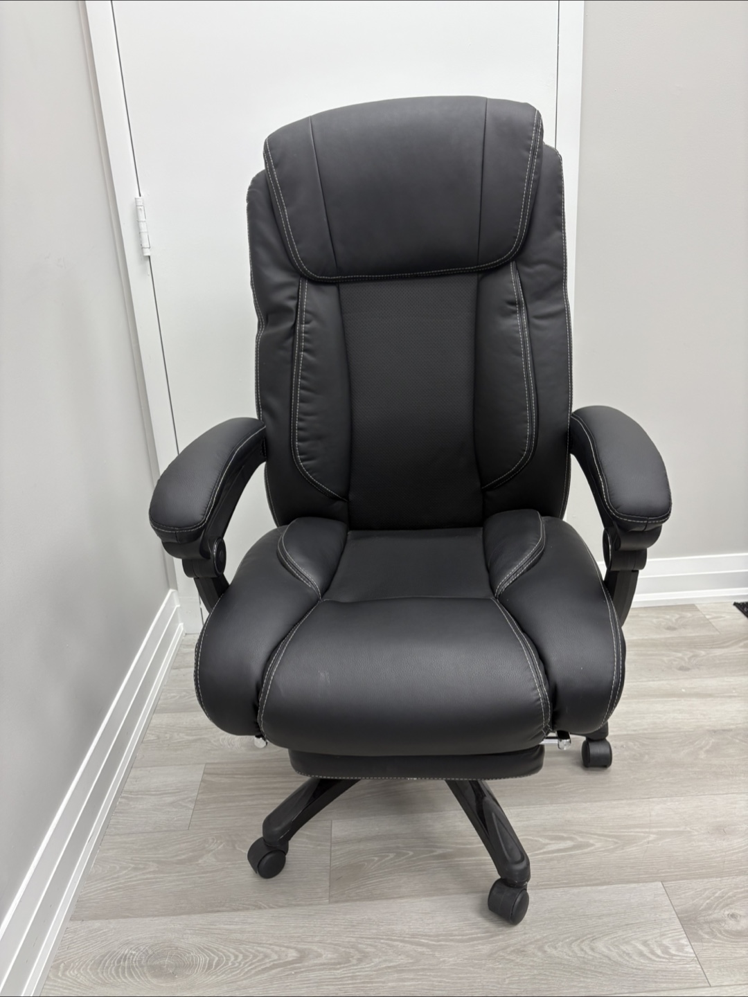 Selling a comfortable black executive office chair. It features a high back and padded armrests for extra support during long workdays. The chair is in great condition and ready to enhance your home office setup!