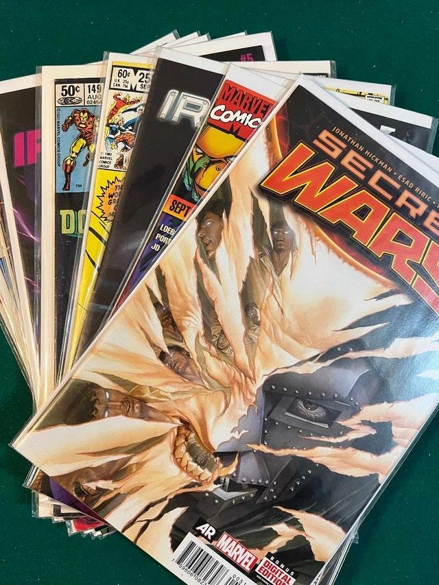 I have put together a great Doctor Doom lot for sale, seeing as he is the main villain in Avengers Doomsday! I am not breaking up the lot. All in great shape. Iron Man #149 is low grade. You get: Secret Wars #5 Invincible Iron Man #11 Infamous Iron Man #3 Fantastic Four #258 Iron Man #149 Invincible Iron Man #5 Double Shot #2 Doom 2099 #1-3 Iron Man #250 - not pictured. Cash only. Pickup is in Etobicoke, near Queensway and Islington.