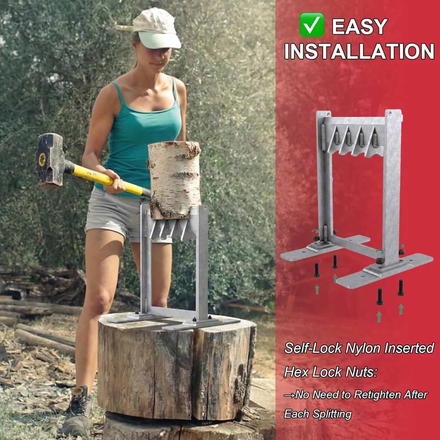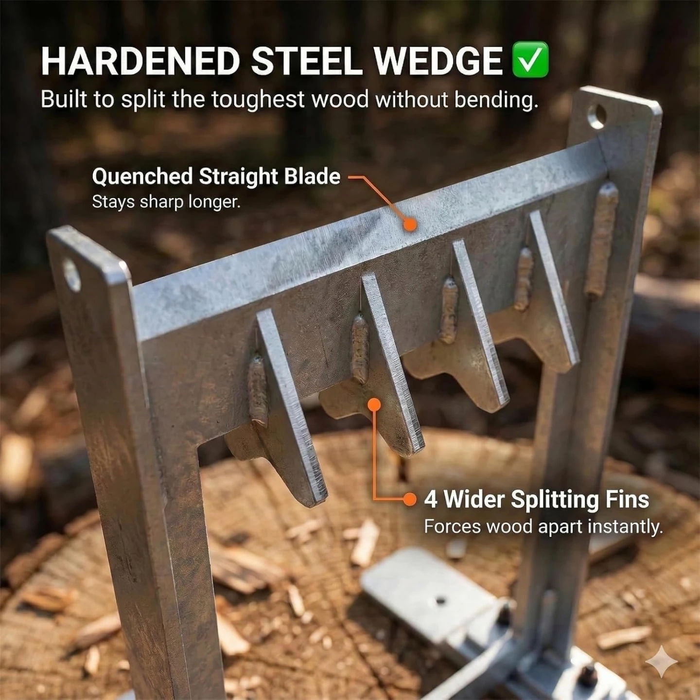 【✅ & 】Engineered to maximize force, our CNC milled, heat-treated straight blade features 4 integrated slanted fins that pop logs apart instantly. This razor-sharp geometry bites into wood with far less effort than dull cast wedges, transforming a tough chore into a simple task that requires less strength, making it accessible for the whole family.