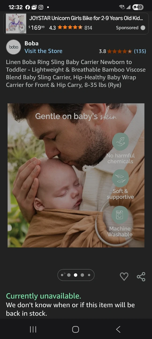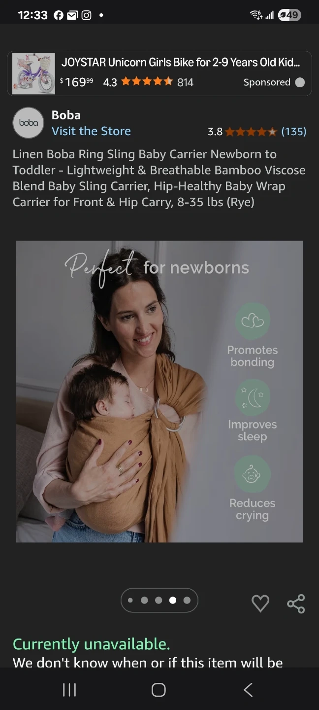 Boba Ring Sling Baby Carrier Newborn to Toddler "π"brand new