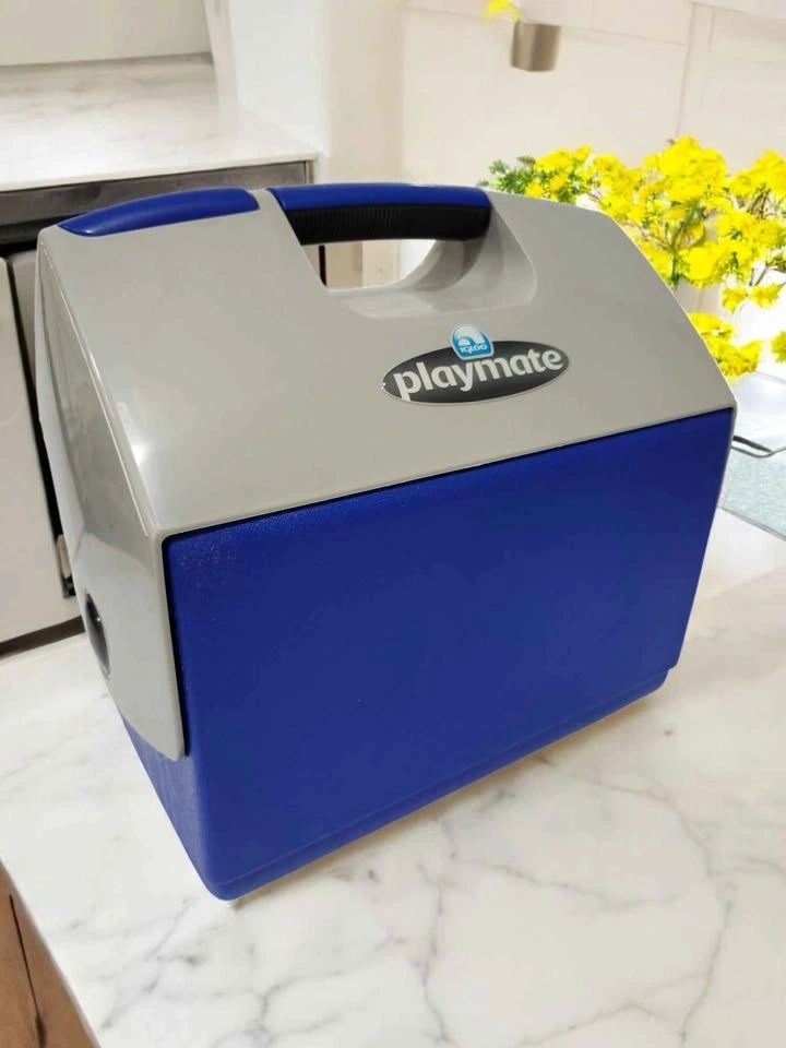 Bring food and beverages to the beach, park or woods in this Igloo Playmate cooler. Its generous 15 litre capacity fits treats and supplies for the whole family. The unique tent top design features a secure lid that prevents spills and is easy to operate with only one hand. We paid $70 after tax a few years ago and have only used it a few times, so it looks like new. The 15L capacity is ideal for lunch. Features a soft grip handle for carrying comfort, a trademarked tent-top design with a secure lid that helps prevent spills, and a push-button lid design for convenient one-handed operation. The lid swings open to either side for easy access to contents. Stain- and odour-resistant liner. Capacity: 15 liters. Product Dimensions: 25.9D x 40.3W x 37.8H Centimetres.
