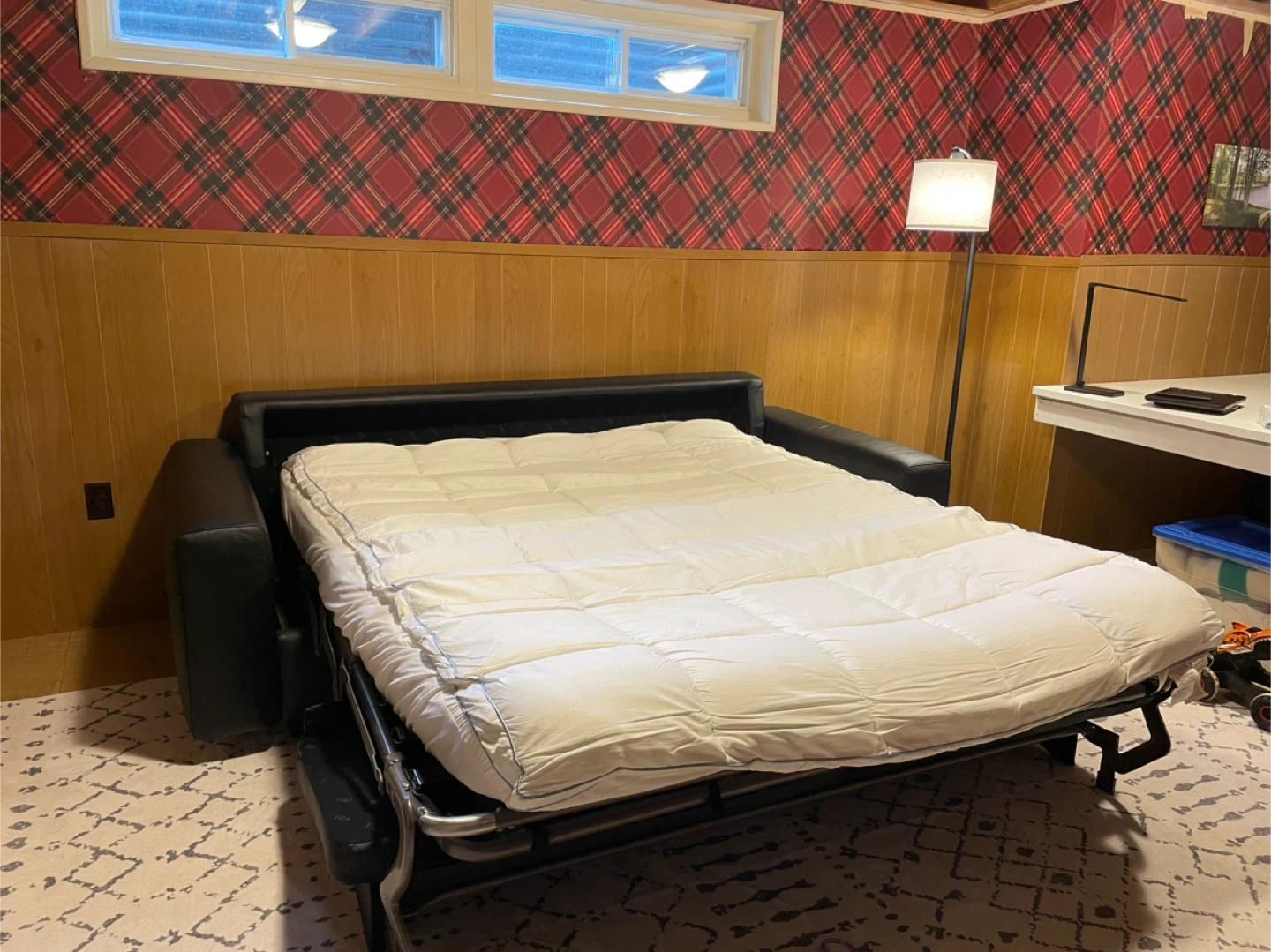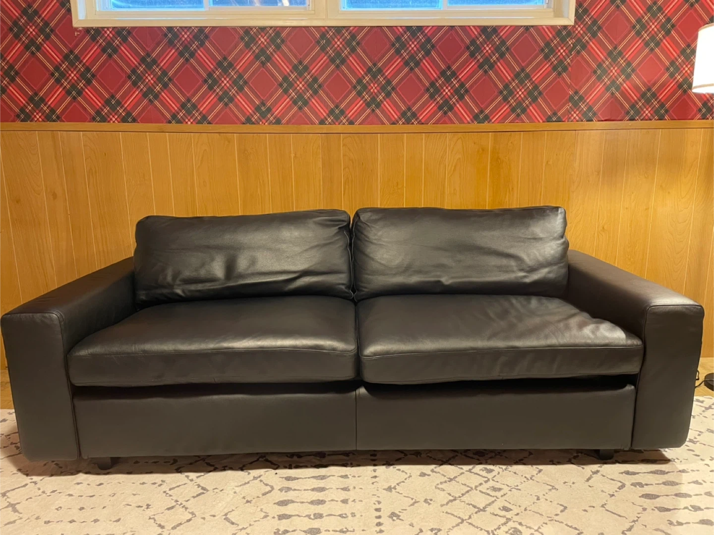 10EQ3 Reva sleeper sofa with queen size bed. Upgraded mattress with topper included. Easy fold out bed that’s actually comfortable for your guests! High quality leather and down filled pillows. Delivery can be negotiated. In excellent condition from a smoke and pet free home.