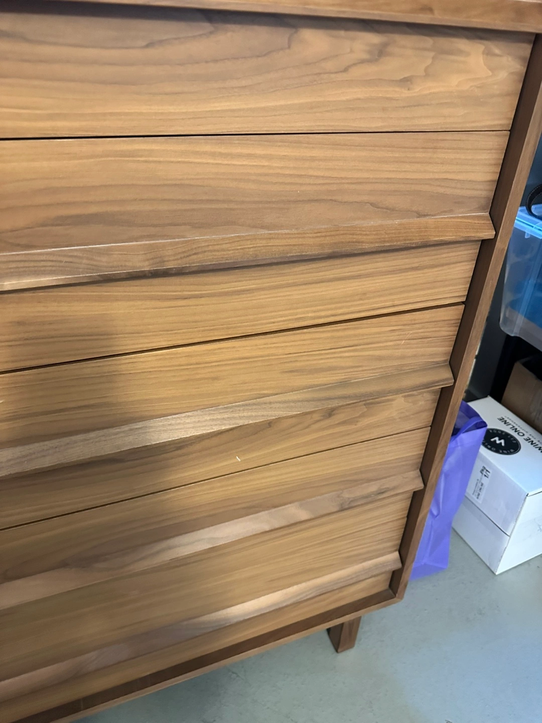 Selling a wood dresser. It's in great condition and has lots of storage space! Made by EQ3, Canadian made. 3 drawer version sells for 1,499 plus tax, this is great value as it’s 5 drawers in impeccable condition. Moved so no longer need. Colour is walnut