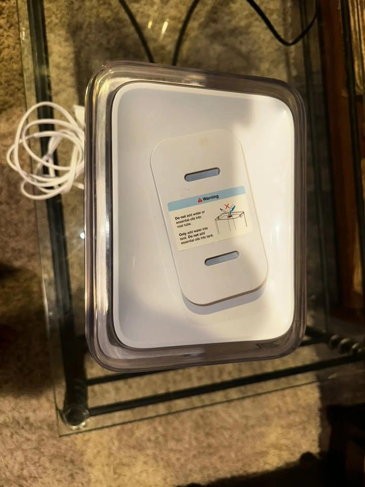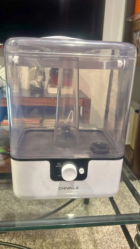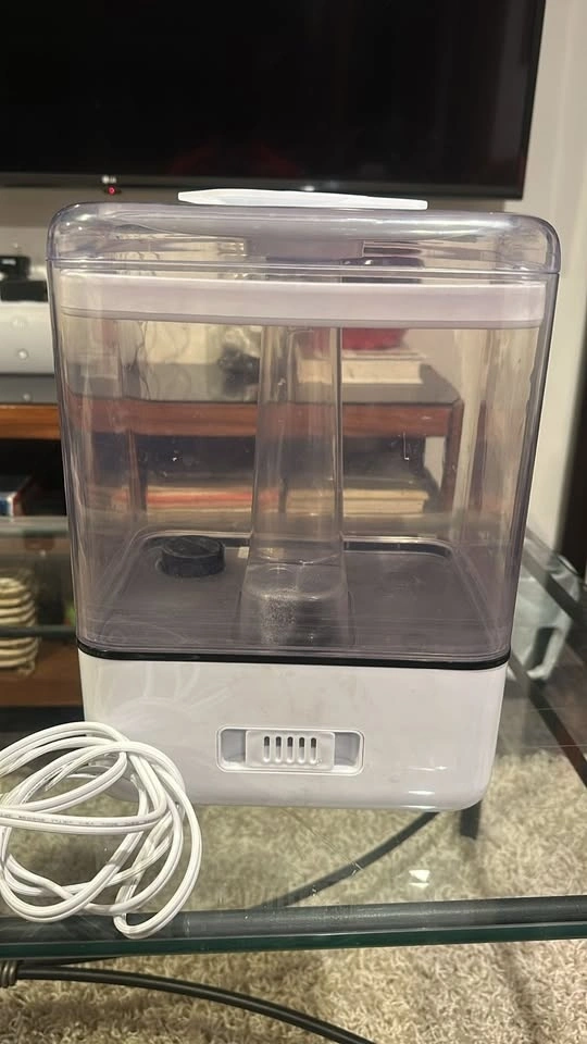 Works perfectly. Clean and ready for use. Great for bedroom, nursery, or plants. Large 6L water tank, up to 50-hour runtime, quiet operation (~26dB), adjustable mist control knob, optional night light, essential oil tray for aromatherapy, top-fill design for easy refilling, and auto shut-off when water is low.