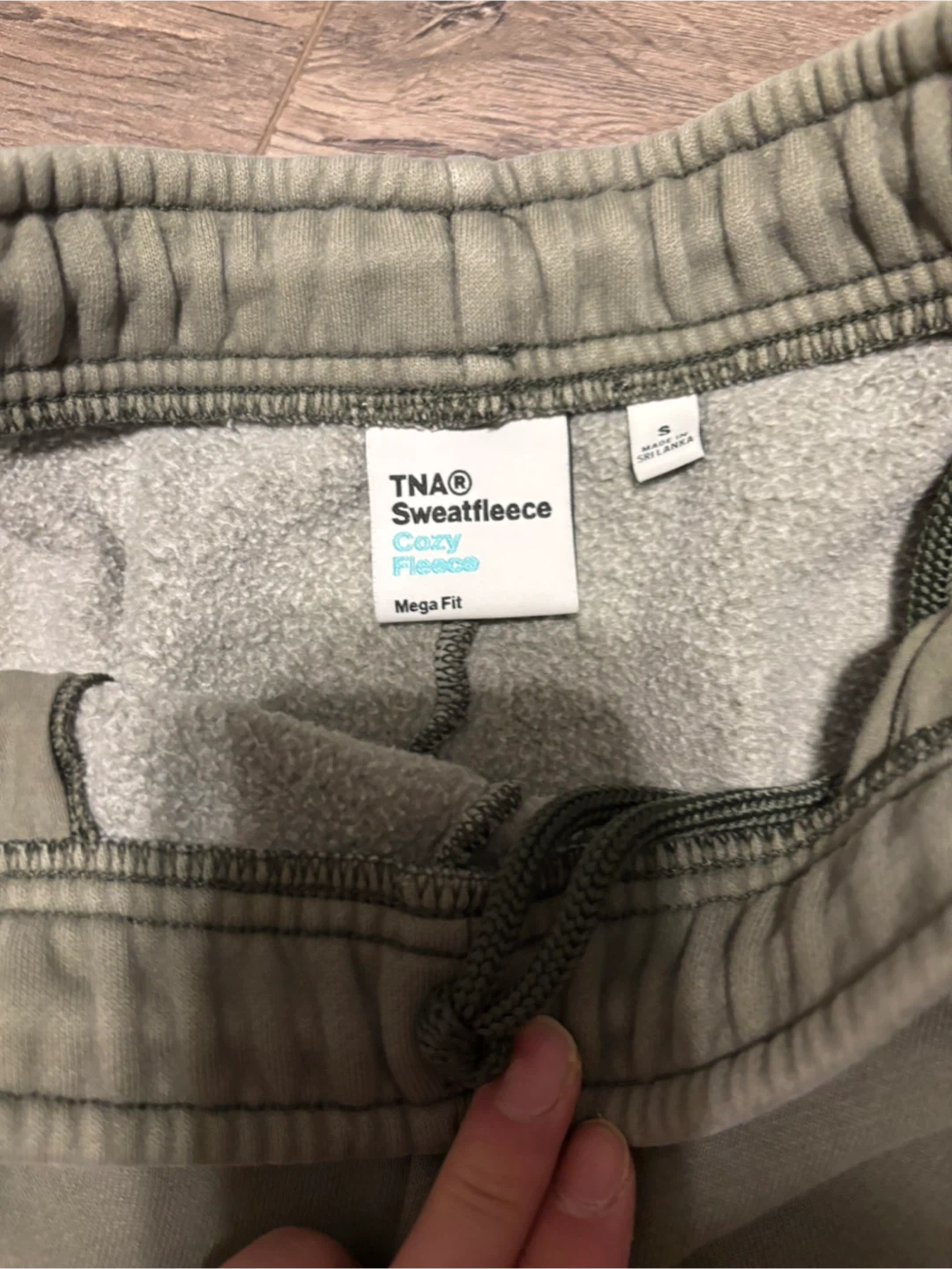 Selling a pair of TNA Sweatfleece Cozy Fleece pants in size small! They're the Mega Fit style and made of cozy fleece material. Perfect for lounging or running errands