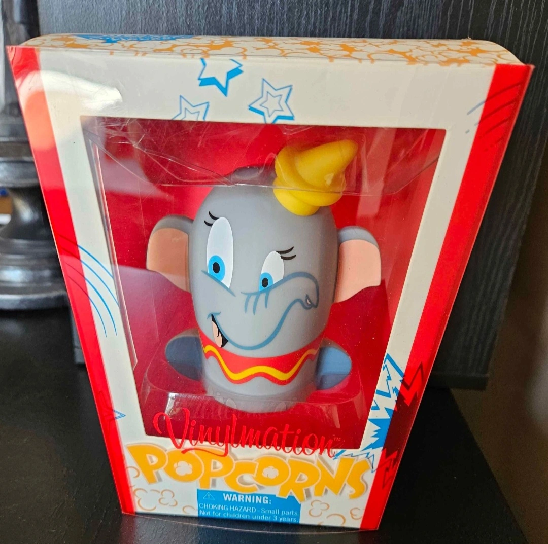 Disney Vinylmation Popcorns Dumbo vinyl collectible figure in EUC in original package. The figure measures approximately 4-4.5 inches tall.