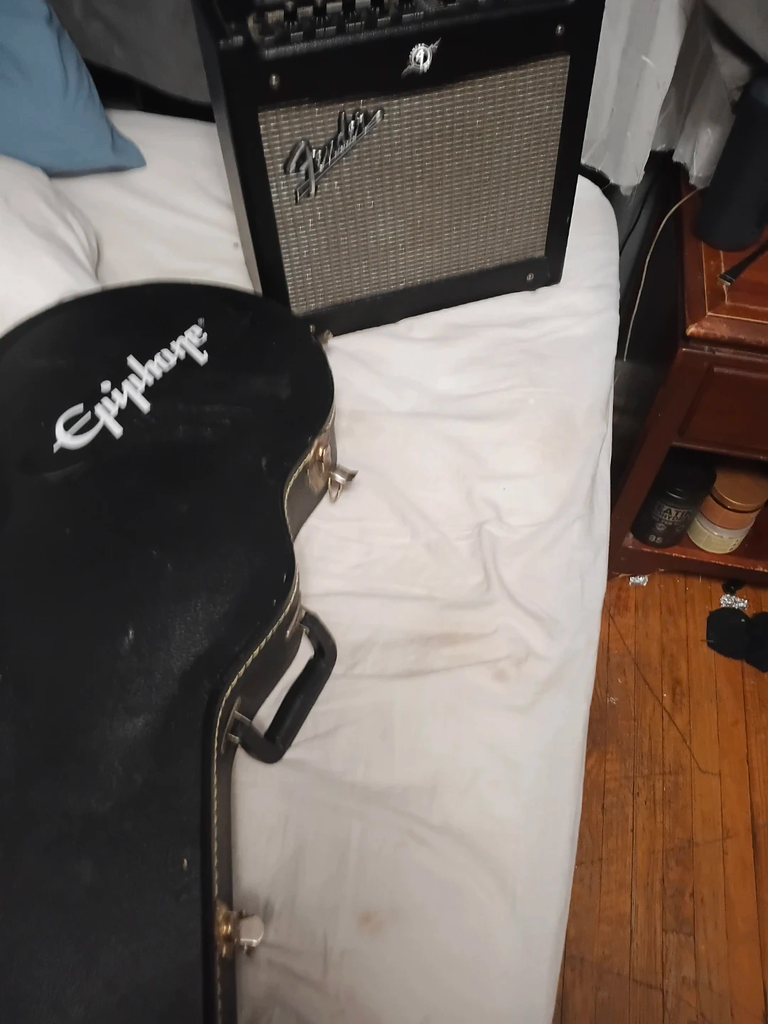 Up for sale is an Epiphone Les Paul Standard Pro electric guitar, complete with its original hard case. It's also bundled with a Fender Mustang I amplifier. This is a great starter pack for any aspiring musician!